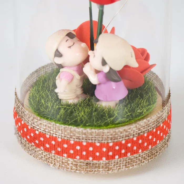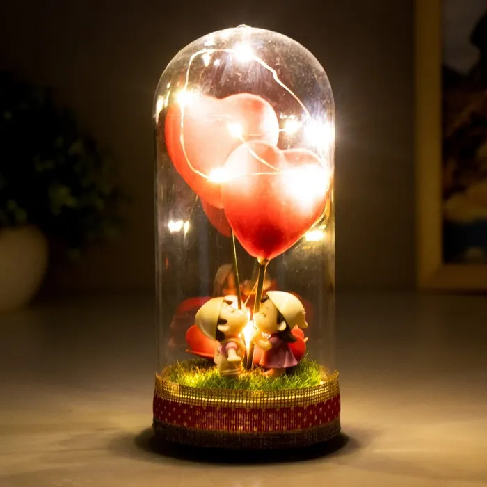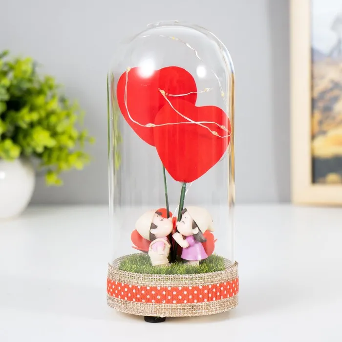 Представляем светящуюся колбу, которая станет настоящим символом романтики и уюта в вашем доме. Её дизайн вдохновлён трогательным моментом первого поцелуя, что делает её идеальным украшением для особенных случаев или повседневной атмосферы тепла. Разноцветное свечение LED-элементов добавляет изделию магии, а компактные размеры (8×8×19 см) позволяют разместить её на любом столе, полке или даже в спальне.