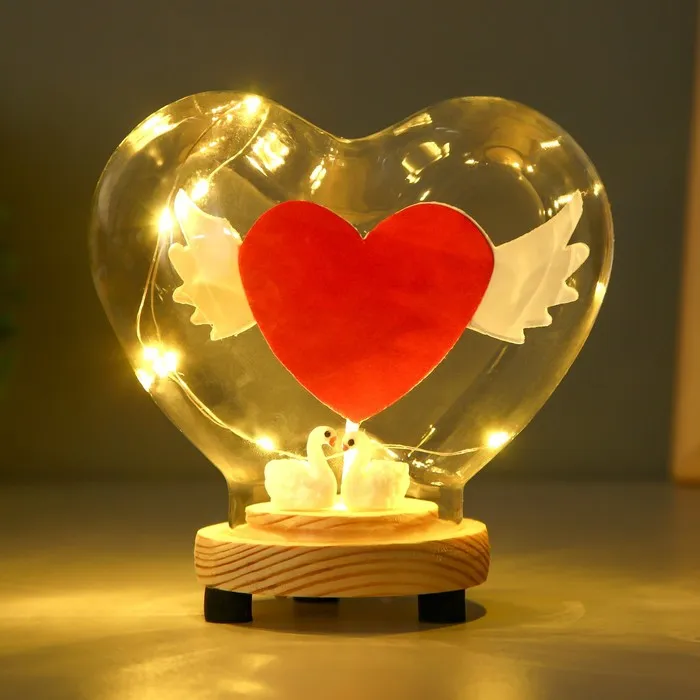 Фигурка светящаяся колба RISALUX «Сердце», LED-ночник, от батареек 3×LR44, 13×7.2×12 см — Характеристики