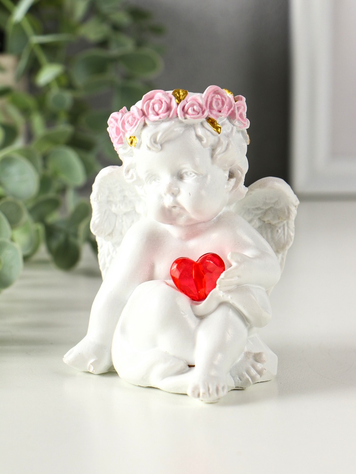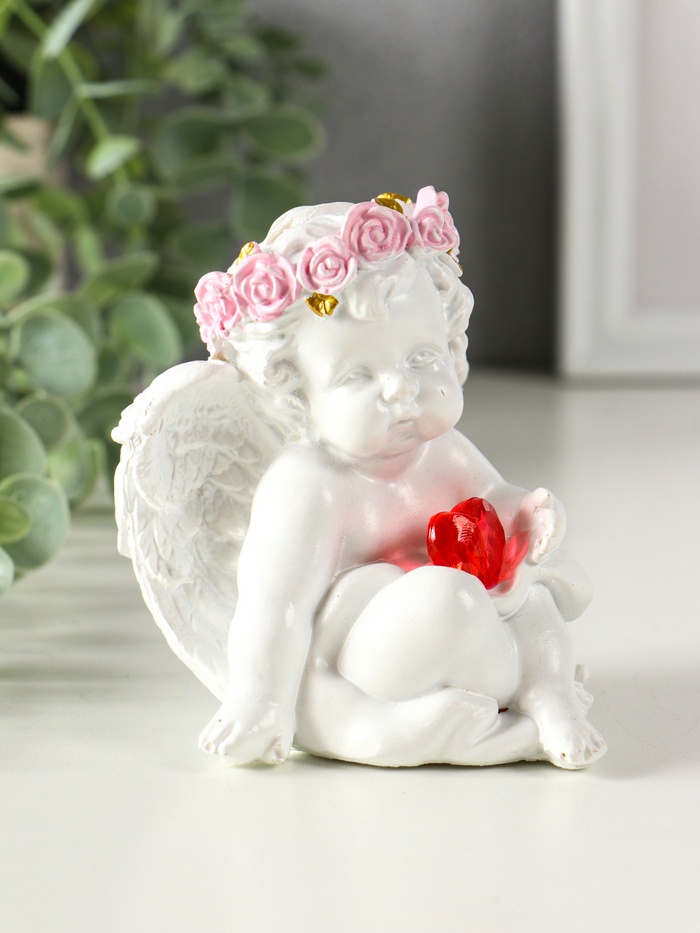 Фигурка светящаяся полистоун «Ангел - воздушный поцелуй в форме сердца», белый, 6.8×6×7.3 см — Характеристики