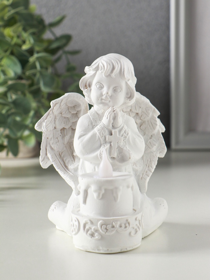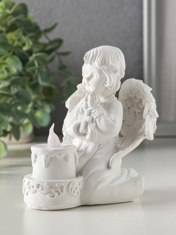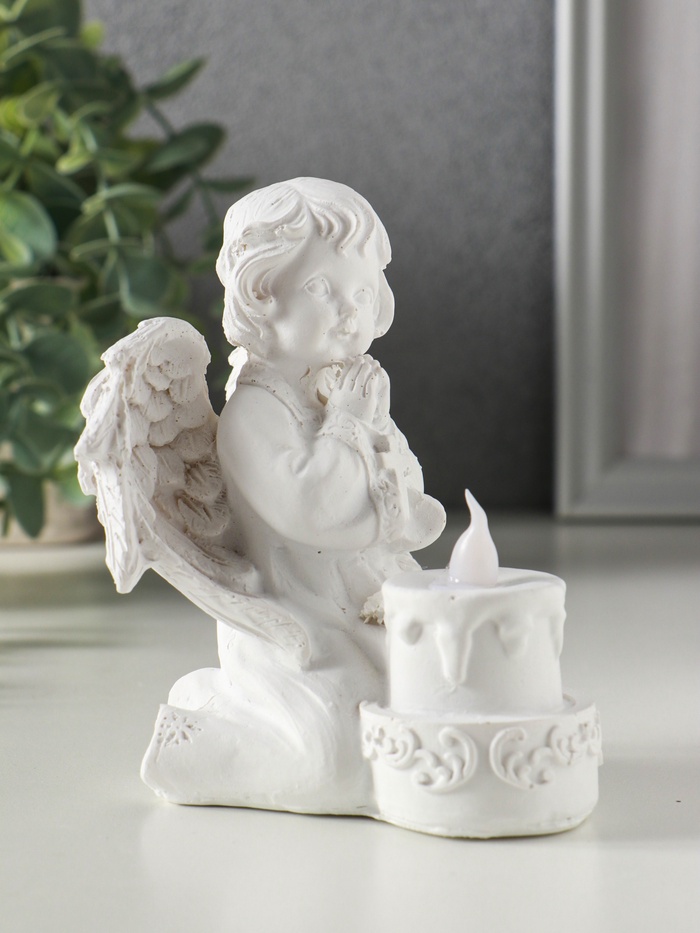 Фигурка светящаяся полистоун «Белоснежный ангел с двухъярусным тортом», 7.7×8.5×11.5 см — Характеристики
