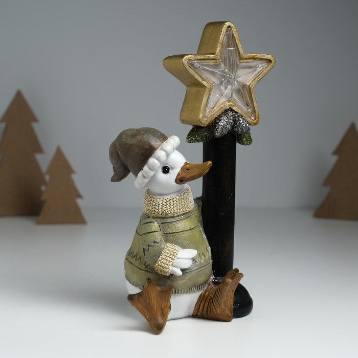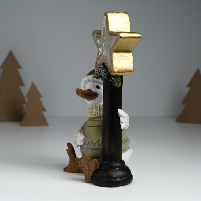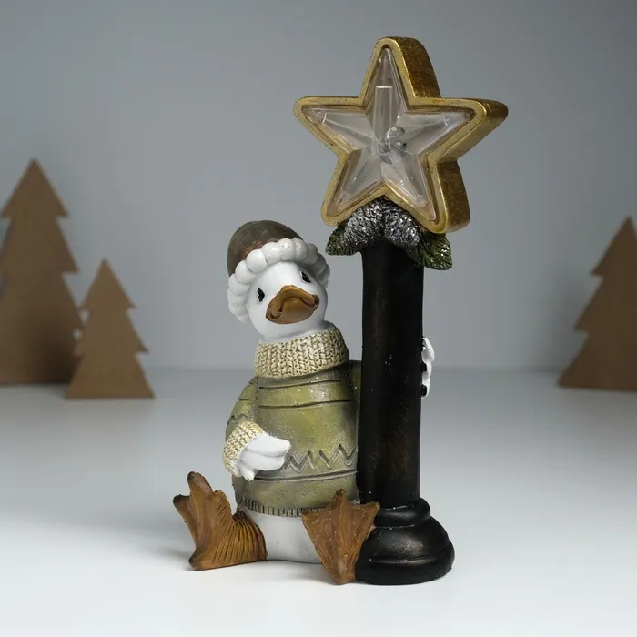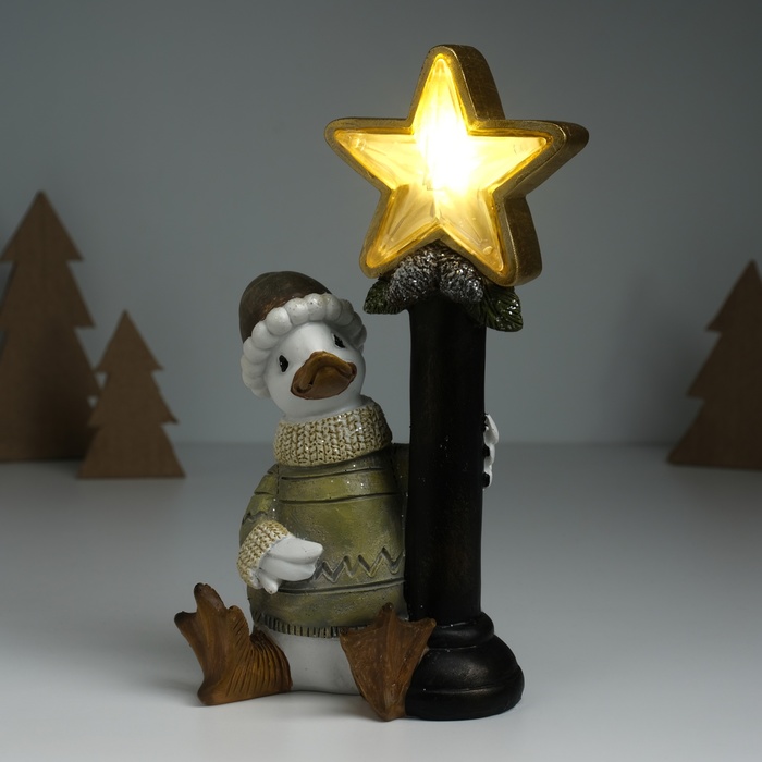 Фигурка светящаяся полистоун «Гусь в свитере у фонарного столба со звездой», 12.5×9×20.3 см — Характеристики
