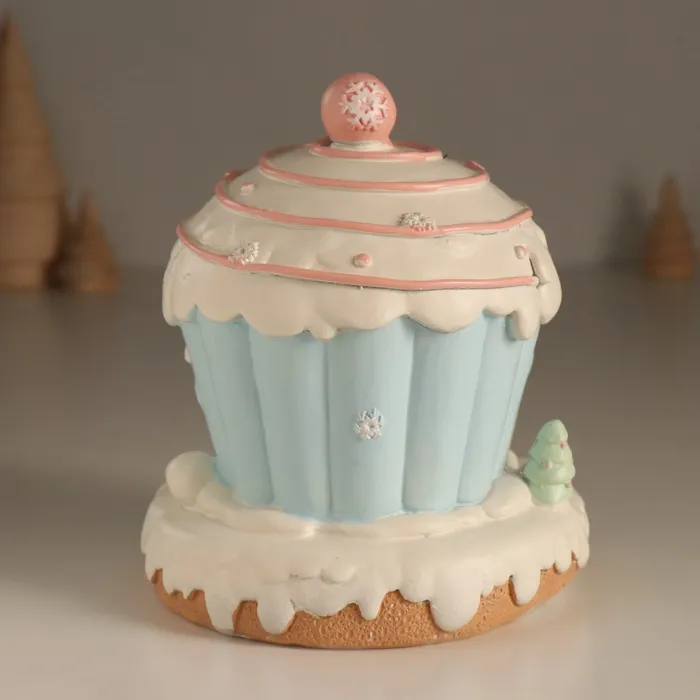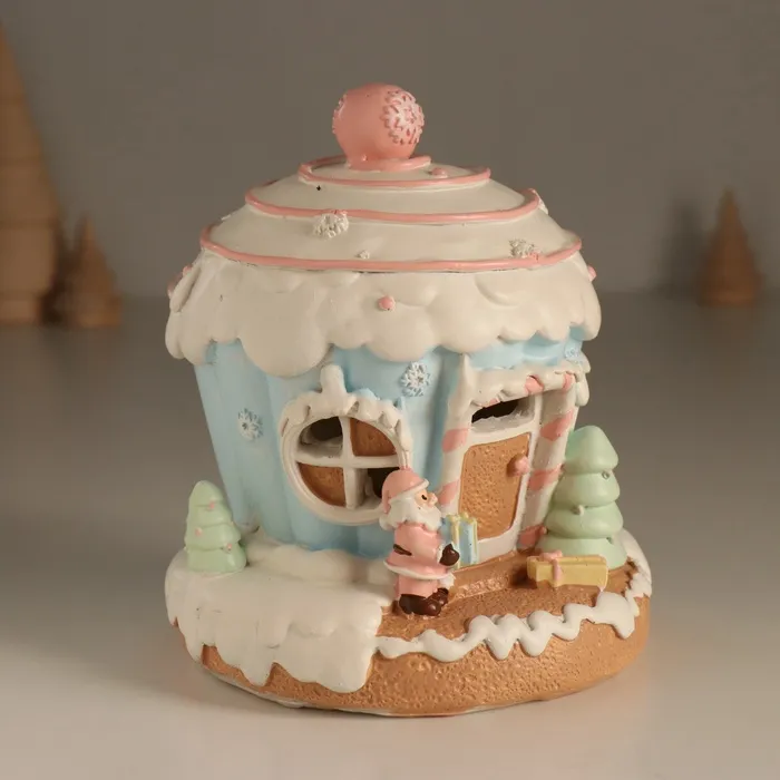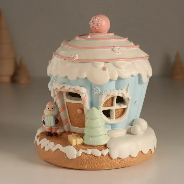 Фигурка светящаяся полистоун «Пряничный домик-кекс, с дедом Морозом», зефирный, 12×12×14 см — Характеристики