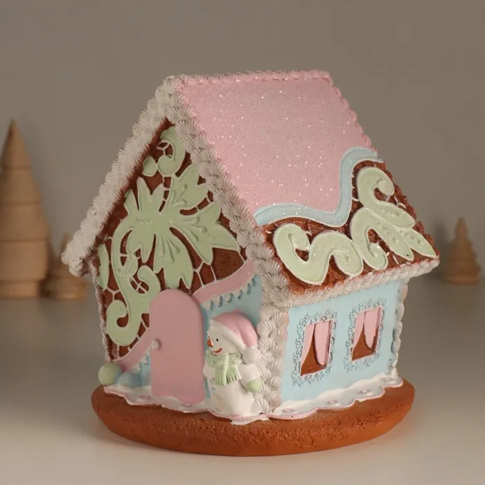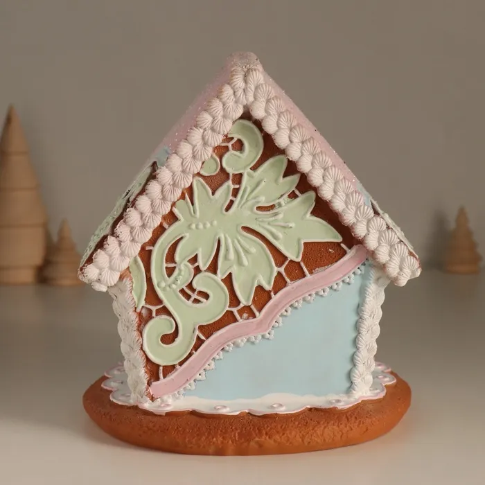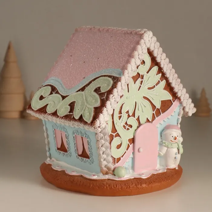 Фигурка светящаяся полистоун «Пряничный домик с узорами, со снеговиком», 16.5×16×17 см — Характеристики