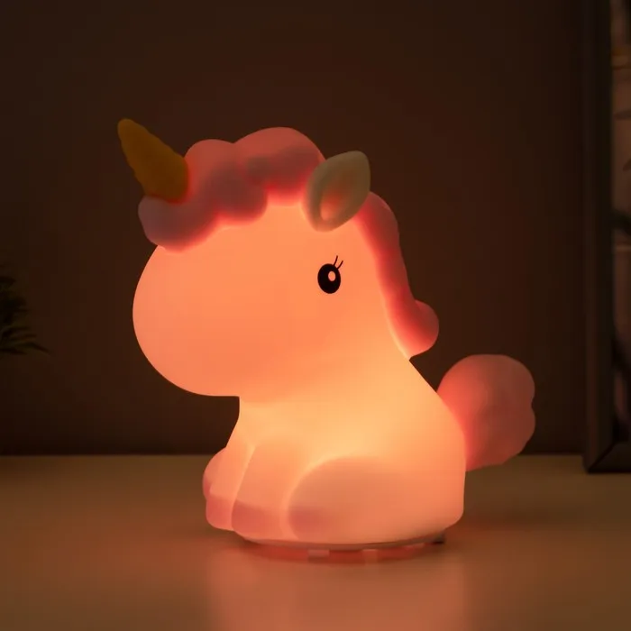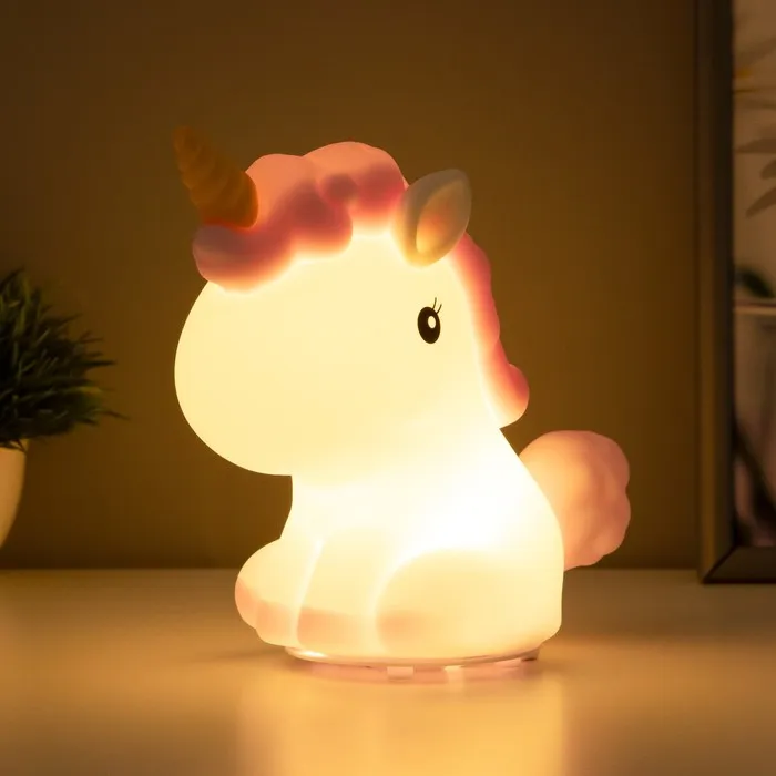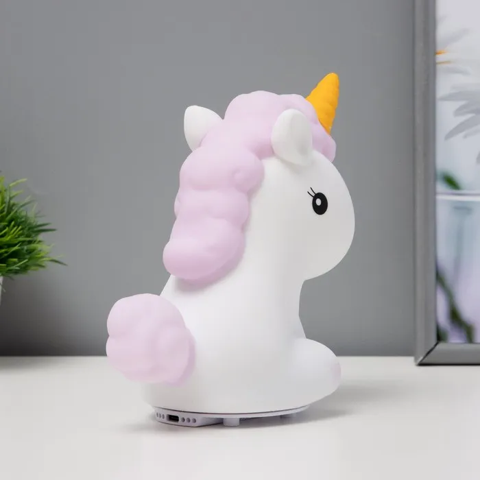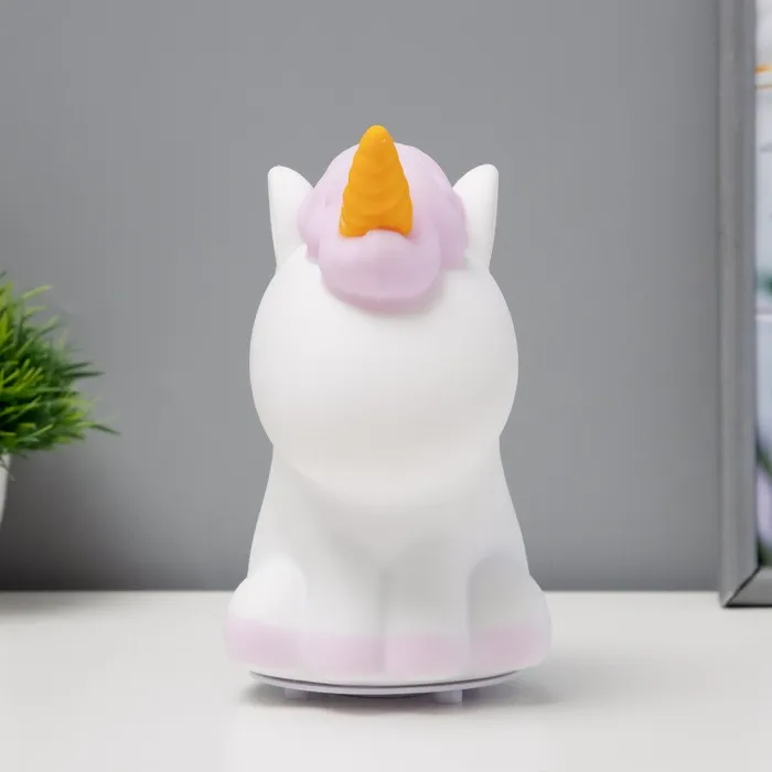 Фигурка светящаяся RISALUX «Антистресс единорог», LED-ночник, мякиш, бело-фиолетовый, 18×10×16 см — Характеристики