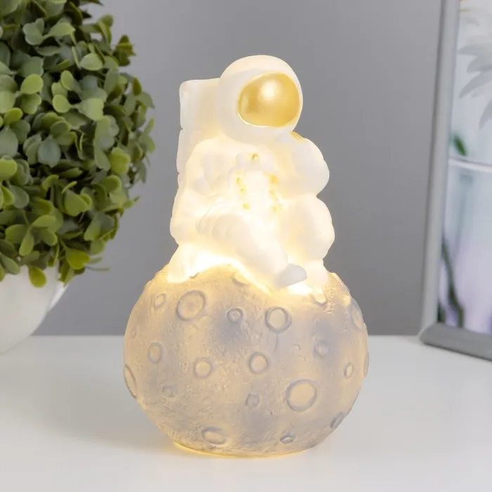 Фигурка светящаяся RISALUX «Космонавт на луне», LED-ночник, от батареек 3×LR44, бело-чёрный, 10×10×17 см — Характеристики