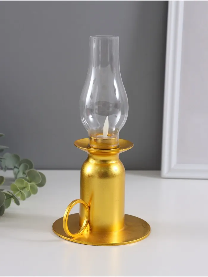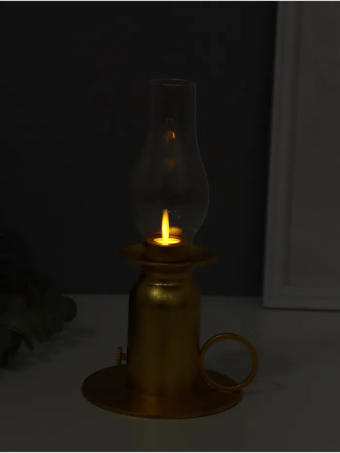 Фигурка светящаяся RISALUX «Лампа», LED 3xLR44, с эффектом живого пламени, золото, 11×11×22 см — Характеристики