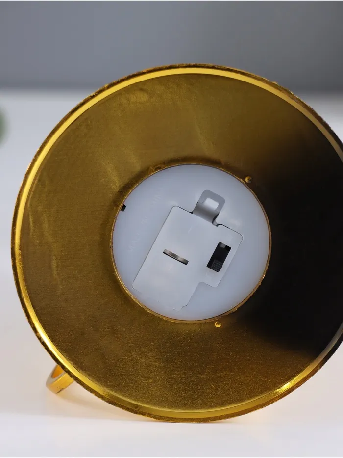 Эта стильная лампа выполнена в золотистом оттенке и изготовлена из качественного пластика, что делает её не только привлекательной, но и долговечной. Компактные размеры 11×11×22 см позволяют разместить её на любой поверхности, будь то полка, стол или подоконник.