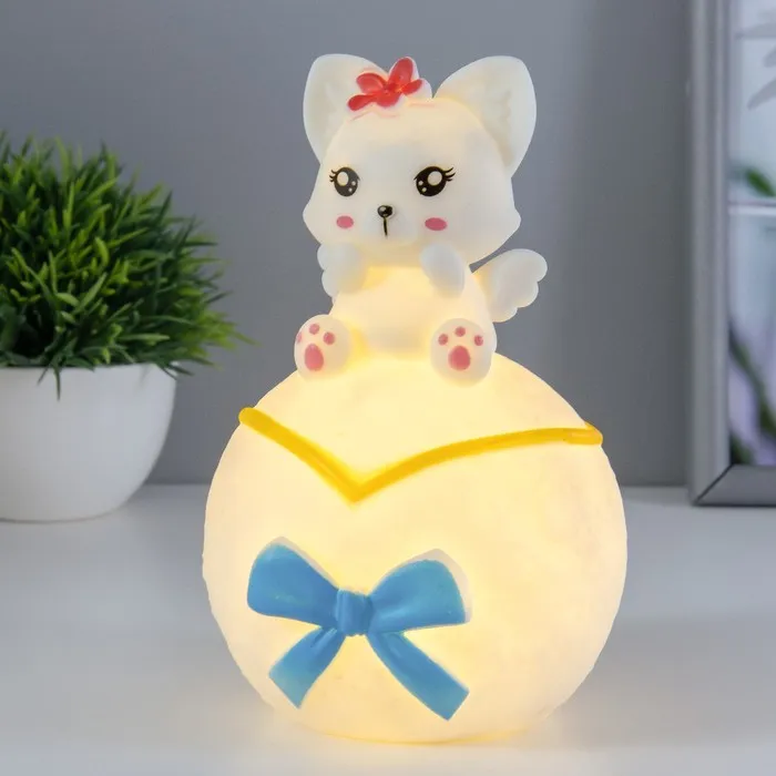 Фигурка светящаяся RISALUX «Лисичка на луне», LED-ночник, 1 Вт, 3×LR44, белый, 10×10×16 см