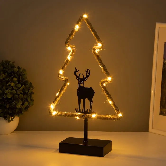 Фигурка светящаяся RISALUX «Новогодняя ёлка», LED-ночник, 3×ААА, чёрный, 7×20×37 см — Характеристики