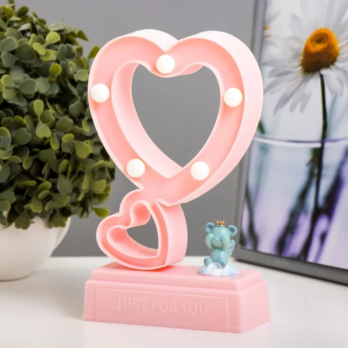 Фигурка светящаяся RISALUX «Сердца», 5×LED, ночник, 4000 К, 2хАА, розовый, 20×12×5.5 см — Характеристики