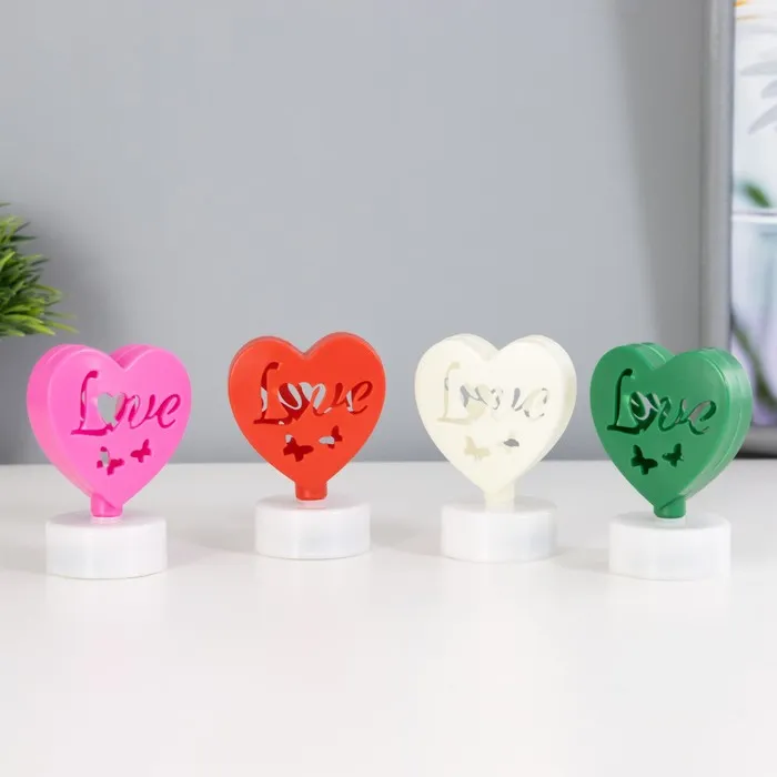 Фигурка светящаяся RISALUX «Сердце. Любовь», LED-ночник, от батареек 3×LR44, 9.5×4×12 см, МИКС — Характеристики
