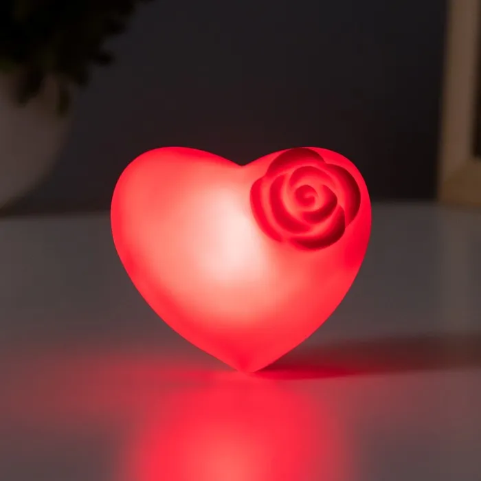 Фигурка светящаяся RISALUX «Сердце с цветочком», LED-ночник, красный, 3.2×6×6.5 см — Характеристики
