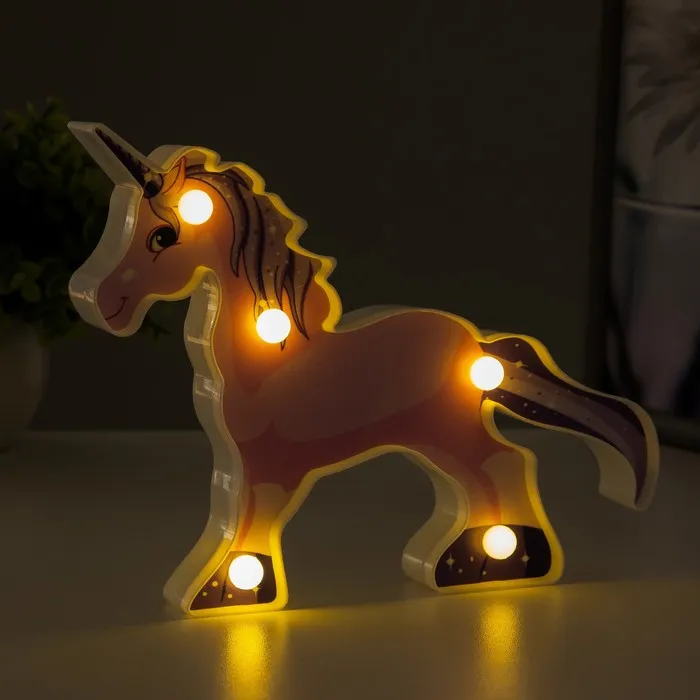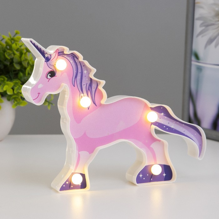 Фигурка светящаяся RISALUX «Сказочный единорог», 5×LED, ночник, батарейки 2×АА, 21×3×17 см, МИКС — Характеристики
