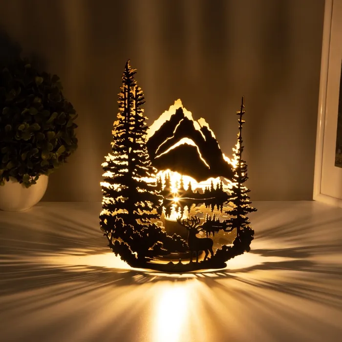 Фигурка светящаяся RISALUX «Вечерний пейзаж», LED-ночник, 3×ААА, чёрный, 10.5×18.5×25 см — Характеристики