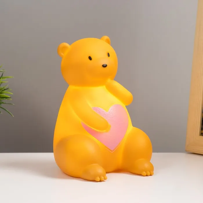 Фигурка светящаяся RISALUX «Влюбленный мишка», LED-ночник, 3×LR44, жёлтый, 10×9×12.5 см — Характеристики