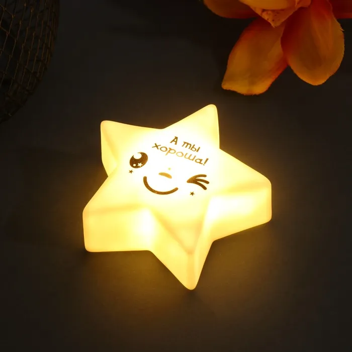 Фигурка светящаяся RISALUX «Звезда. Смайл», LED-ночник, 3xLR1130, 7×7×2.5 см — Характеристики