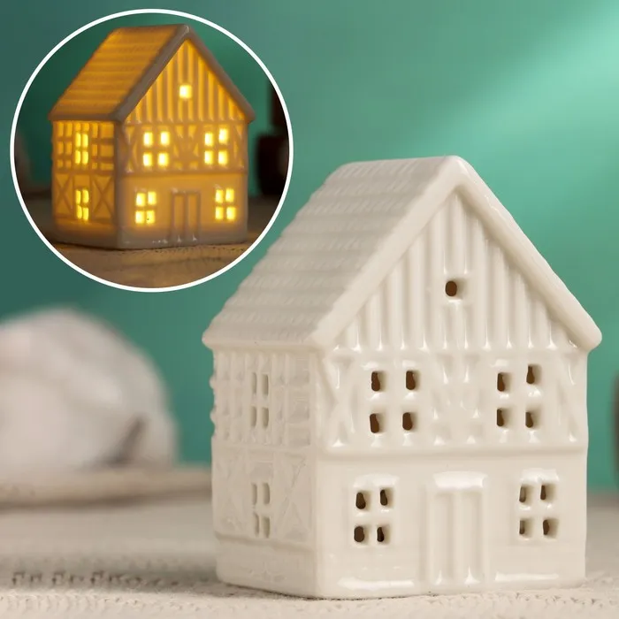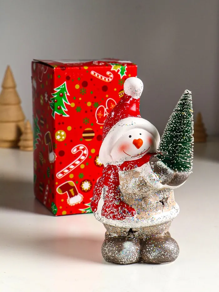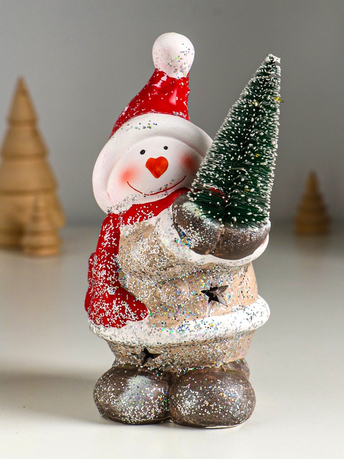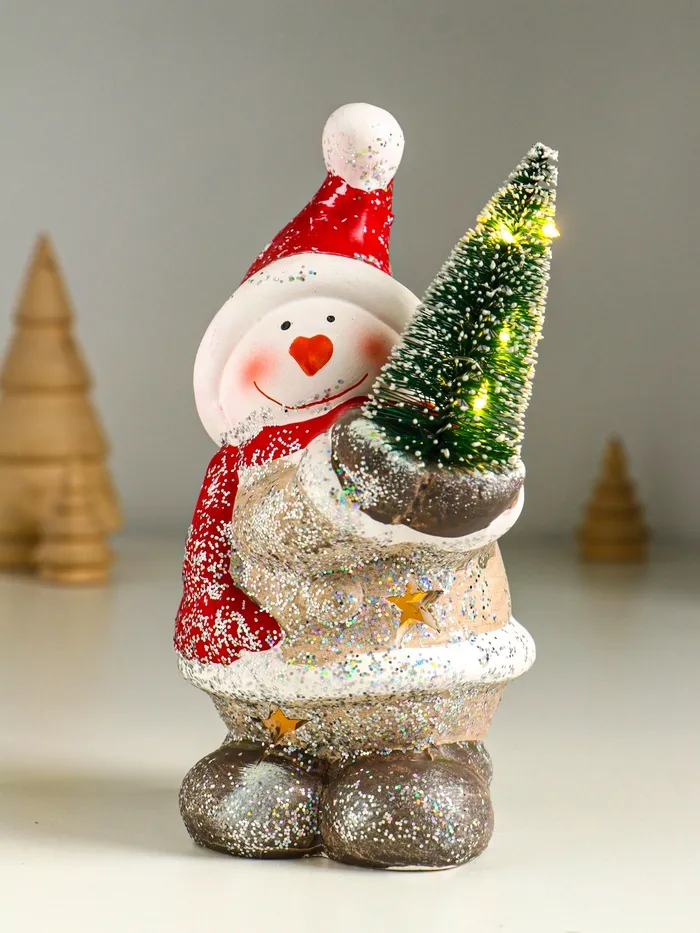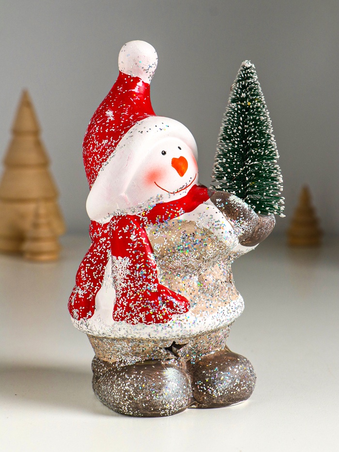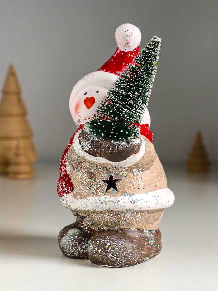 Фигурка светящаяся «Снеговик в серебристой шубке с ёлочкой», керамика, 9.5×7.5×14.5 см — Характеристики