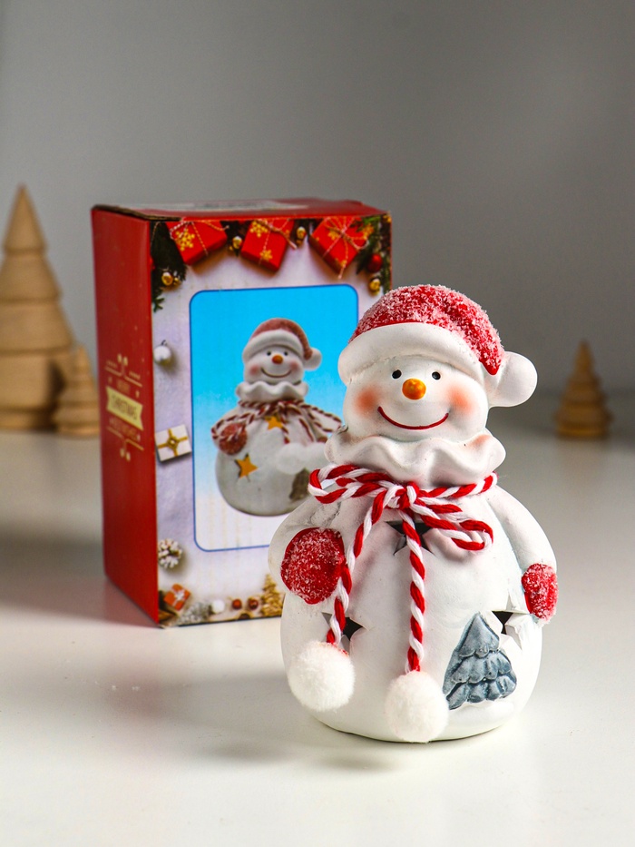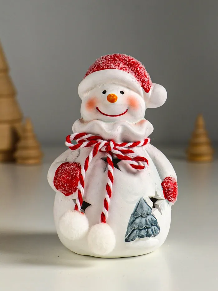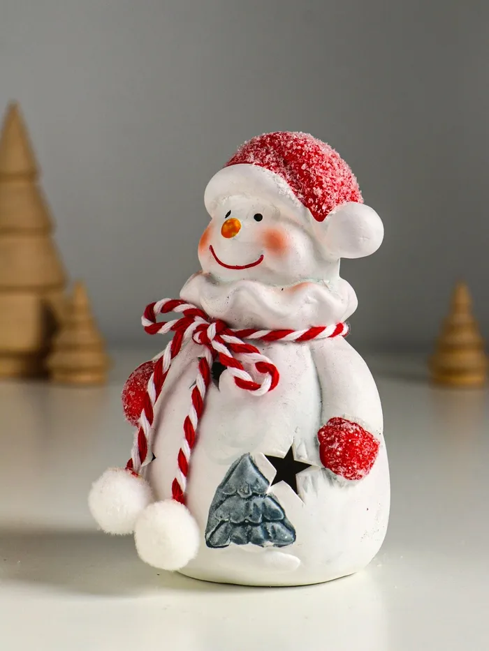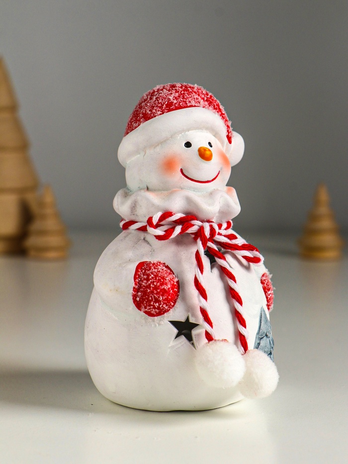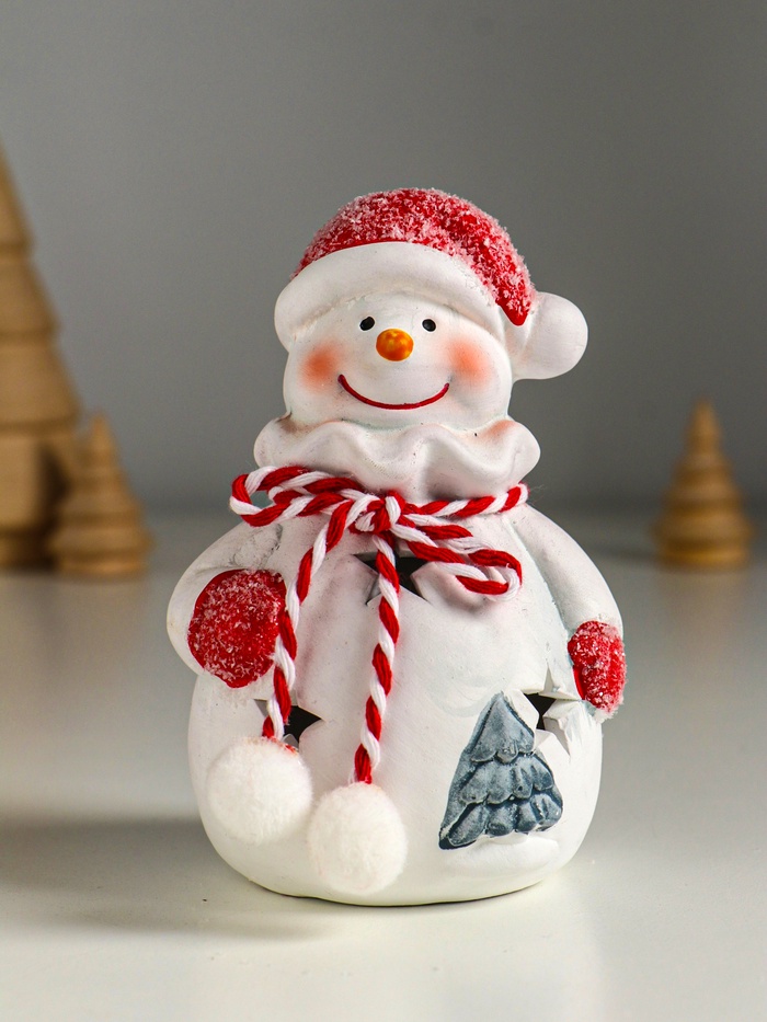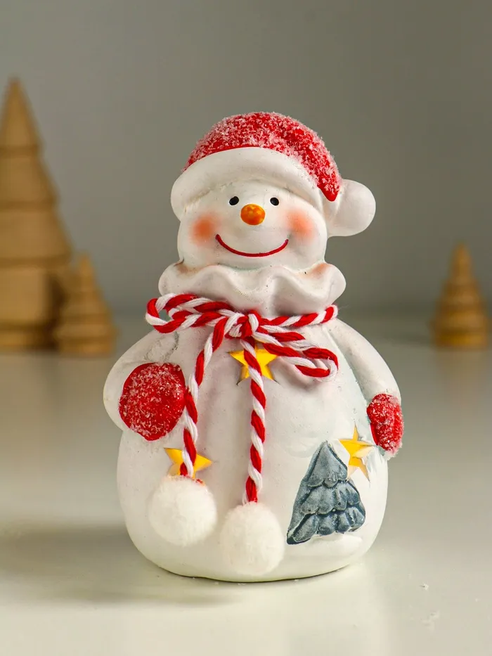 Фигурка светящаяся «Снеговик в шубке с помпонами», керамика, 7.5×6.5×12.5 см — Характеристики