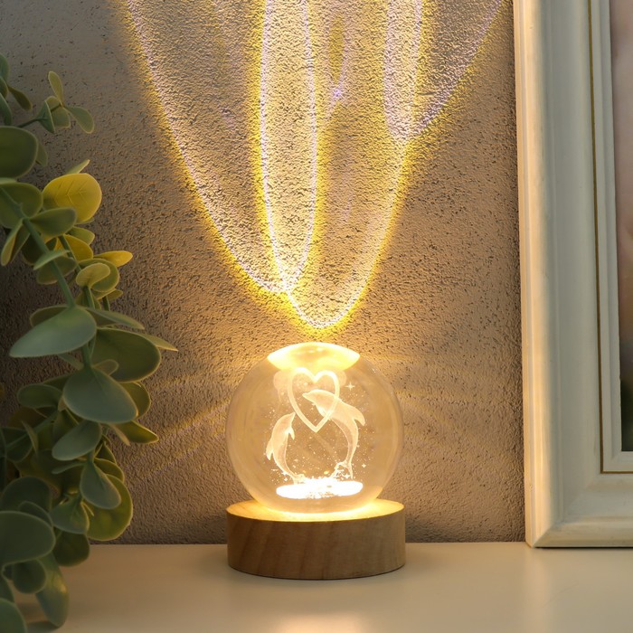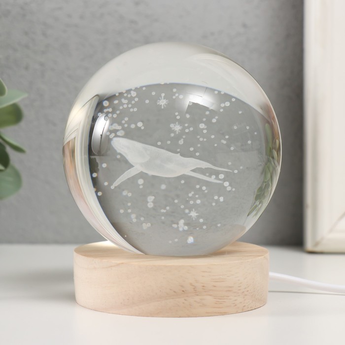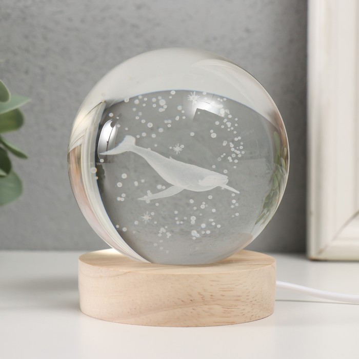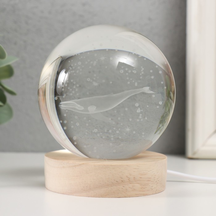 Фигурка светящаяся стекло «Шар. Кит», d=8 см, подставка дерево, USB, 8×8×9.5 см — Характеристики