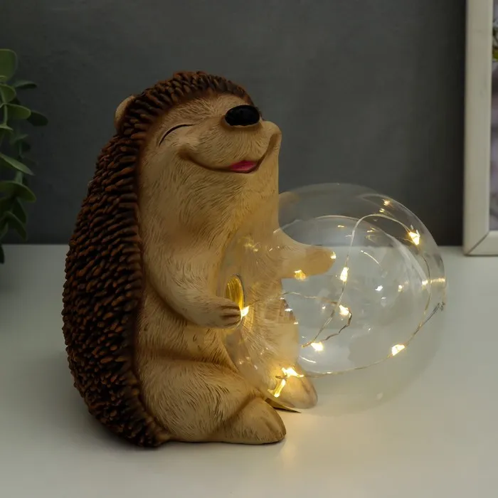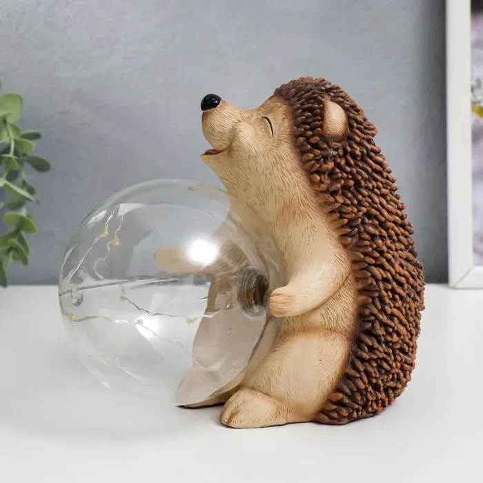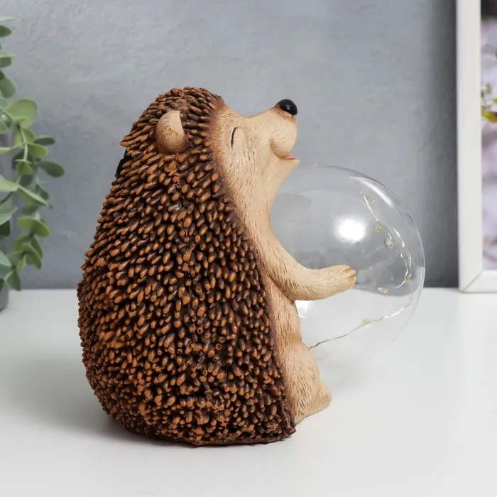 Позвольте солнечному свету оживить ваш интерьер с этой очаровательной фигуркой, где любопытный ёжик застыл в момент игры с переливающимся мыльным пузырём. Каждый вечер, когда наступают сумерки, она превращается в мягкий источник света, создавая атмосферу уюта и волшебства.