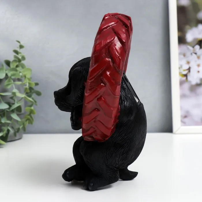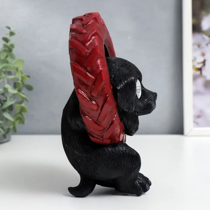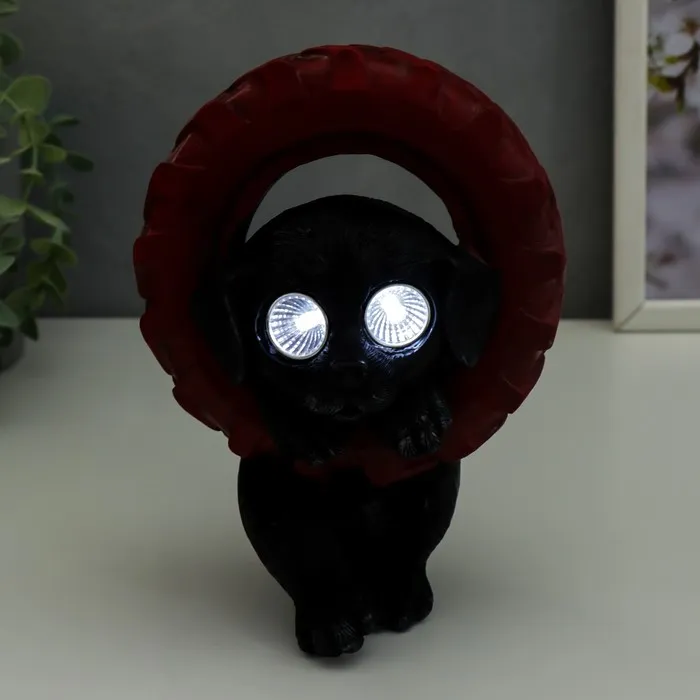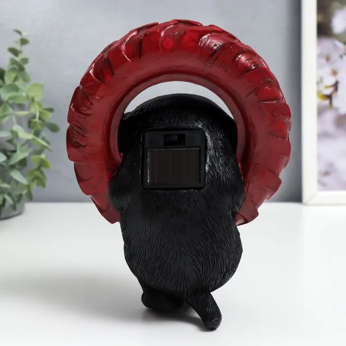 Фигурка световая полистоун «Чёрный пёсик спрятался в колесе», от солнечной батареи, 19.5×11×13.5 см — Характеристики
