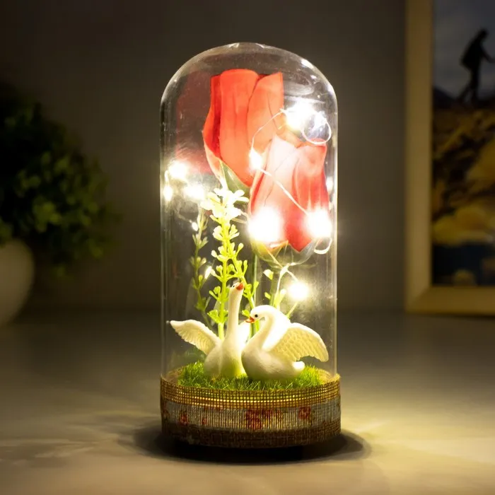 Фигурка световая в колбе RISALUX «Два лебедя», LED-ночник, от батареек LR44, 8×8×19 см — Характеристики