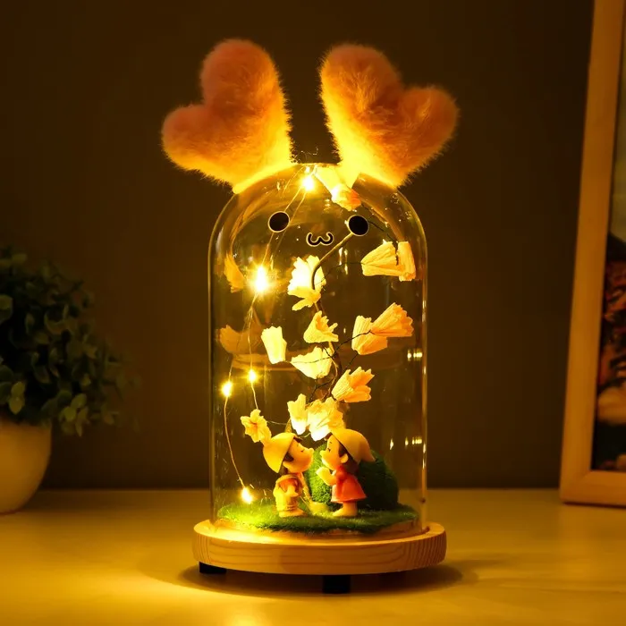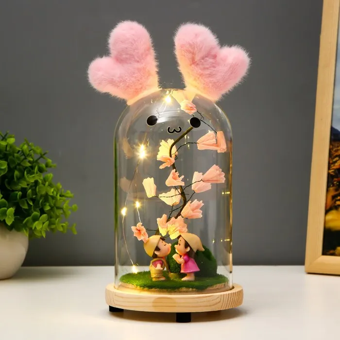 Великолепный ночник и подарок в одном аксессуаре. Этот вечный цветок не вянет и не требует особого ухода. Такие композиции часто применяют во флористике, упаковке подарков и дизайне интерьеров.