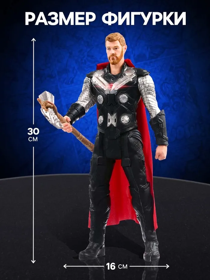 Фигурка «Тор с короткими волосами», коллекционная, с оружием, световые эффекты, Мстители — Характеристики