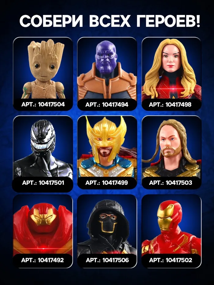 - Часть коллекционной серии героев Marvel, вдохновляющей на сбор всей команды Мстителей.