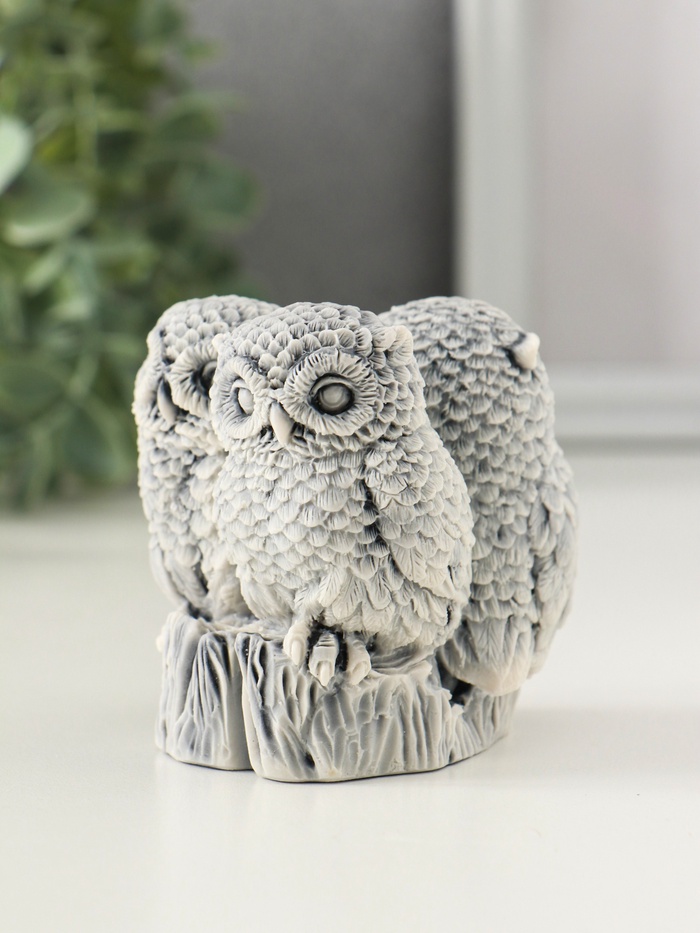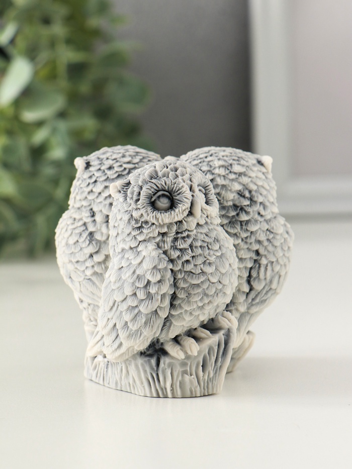 Эта композиция с тремя совами из мраморной крошки станет тёплым символом семейного очага. Миниатюрная скульптура наполняет пространство уютом и мудрой энергией, создавая атмосферу единения.