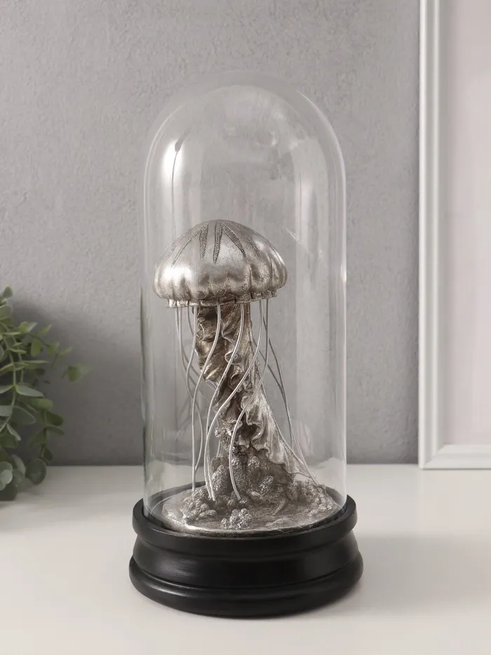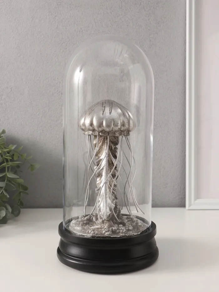Представляем вам уникальную фигурку, которая станет изысканным украшением вашего интерьера. Эта декоративная фигурка в форме медузы, выполненная из полистоуна и помещенная в колбу, привнесет в ваш дом атмосферу загадочности и элегантности. Серебристый оттенок придает изделию особую привлекательность, делая его центральным элементом декора.