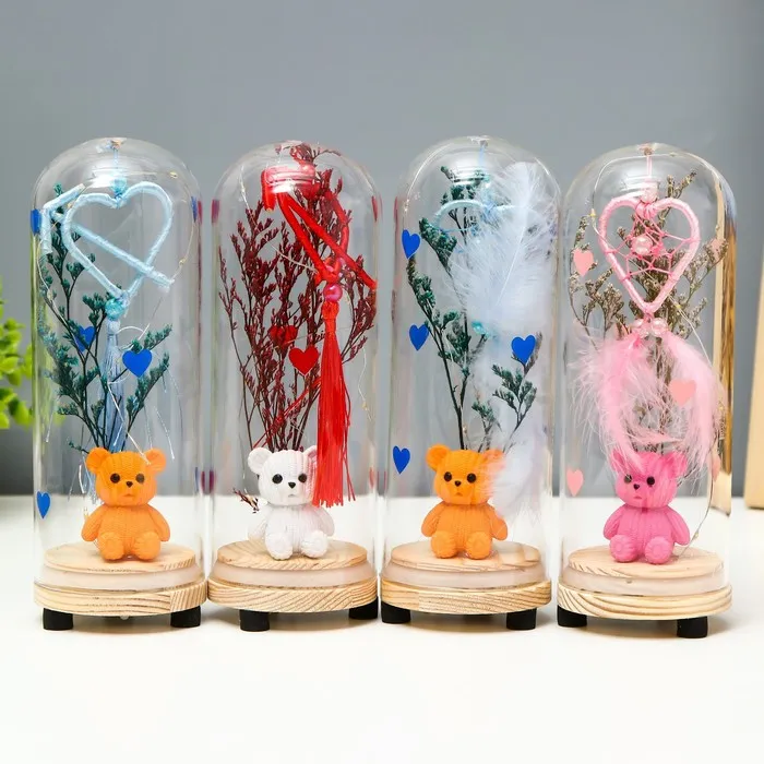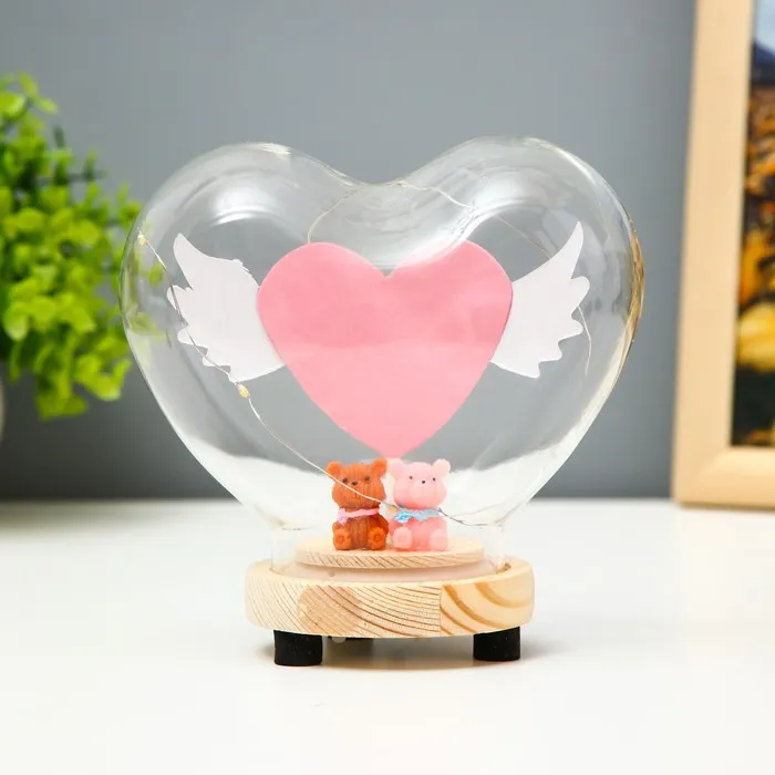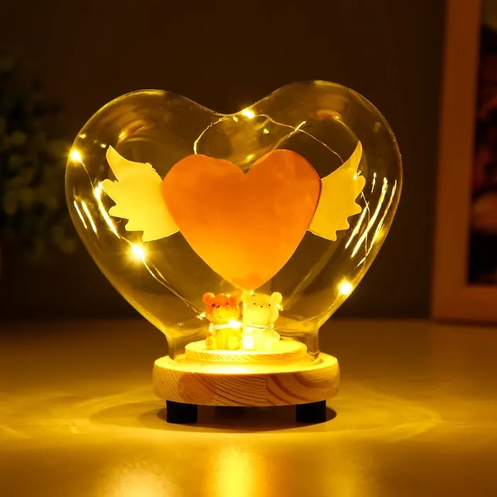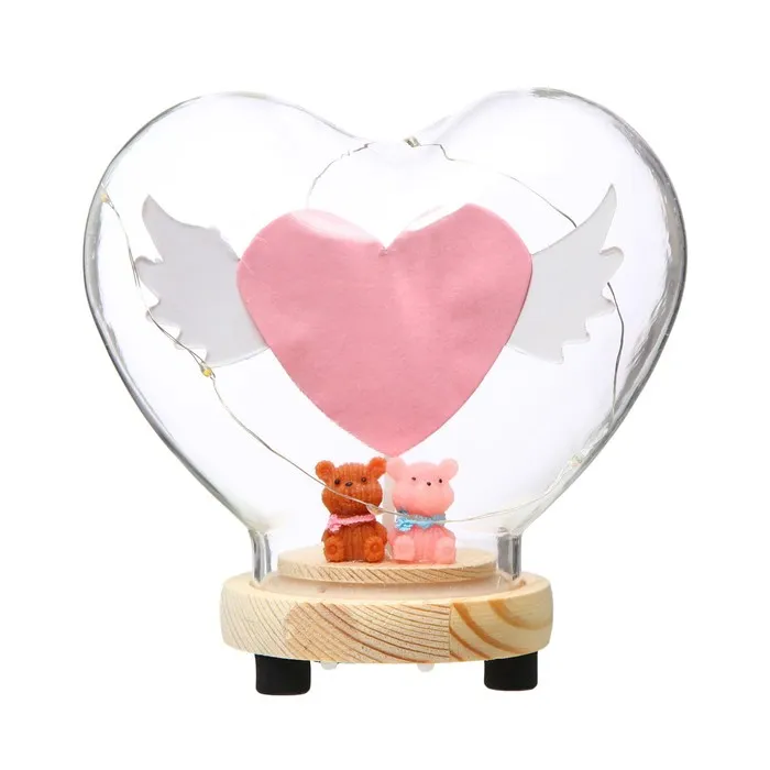 Фигурка в колбе RISALUX «Сердце цветное», LED-ночник, от батареек 3×LR44, 13×7.2×12 см — Характеристики