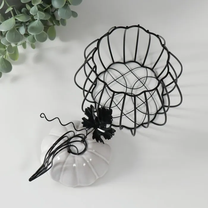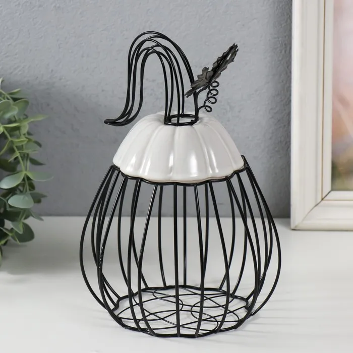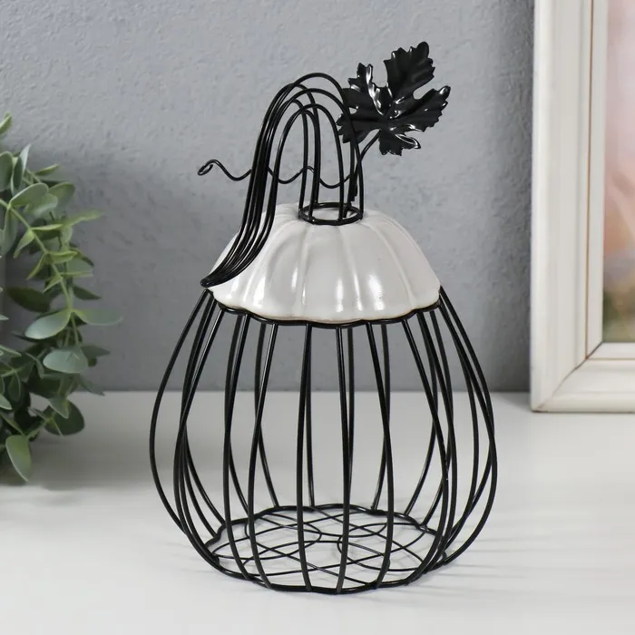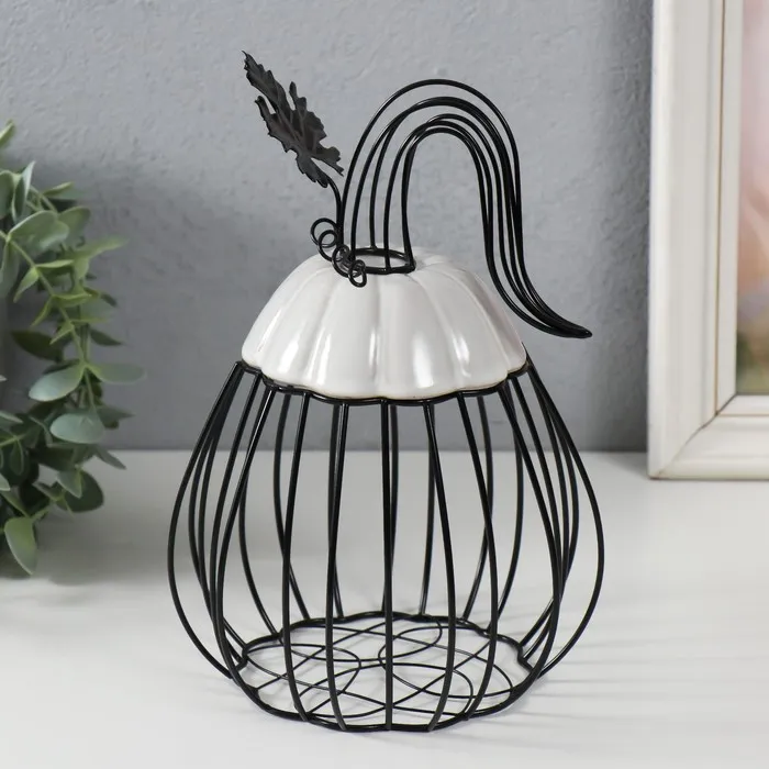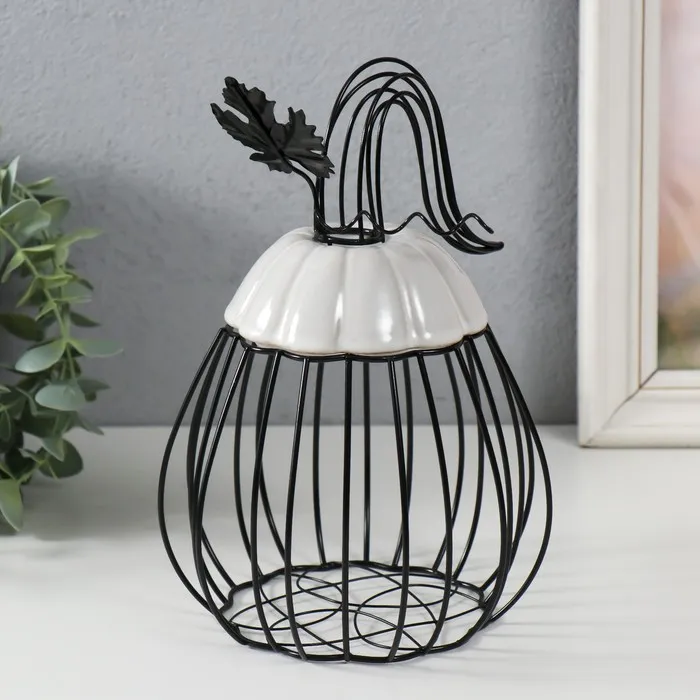 Фигурка-вазон «Тыква с листочком», подставка, металл, керамика, чёрная с белым, 14.3×14.3×21 см — Характеристики