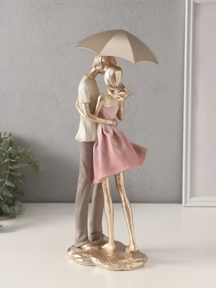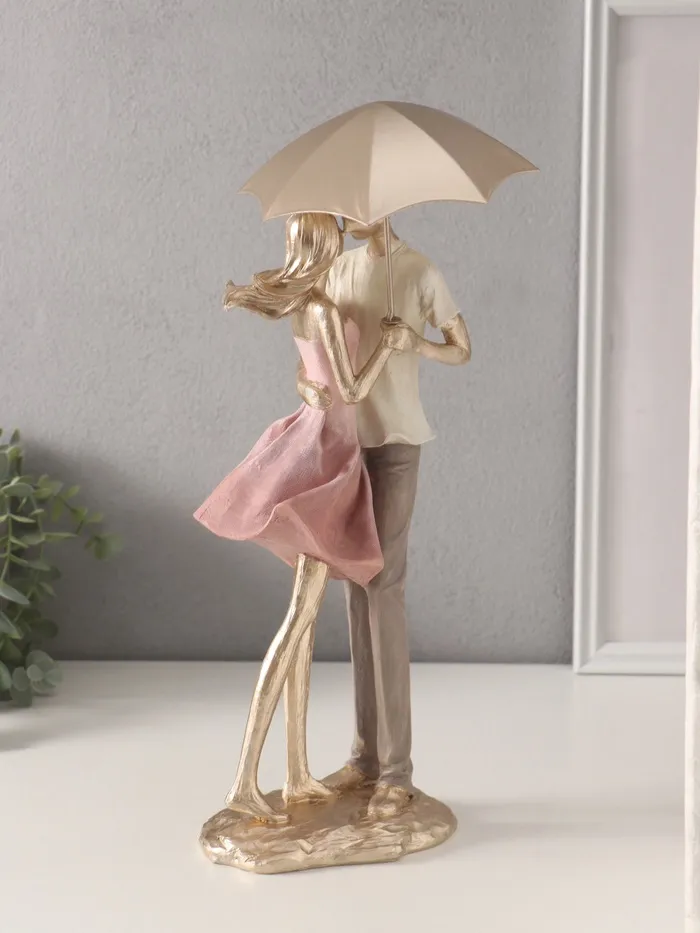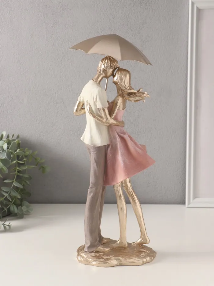 - Романтический дизайн: фигурка изображает влюбленную пару под зонтом, что придает ей особую сентиментальную ценность.