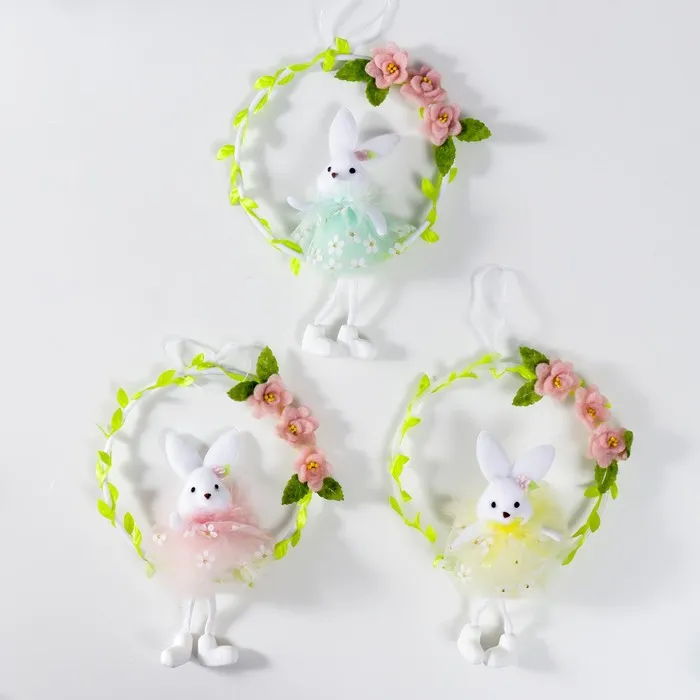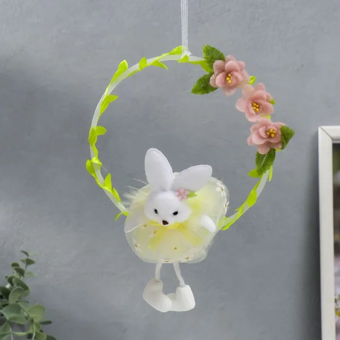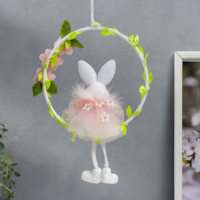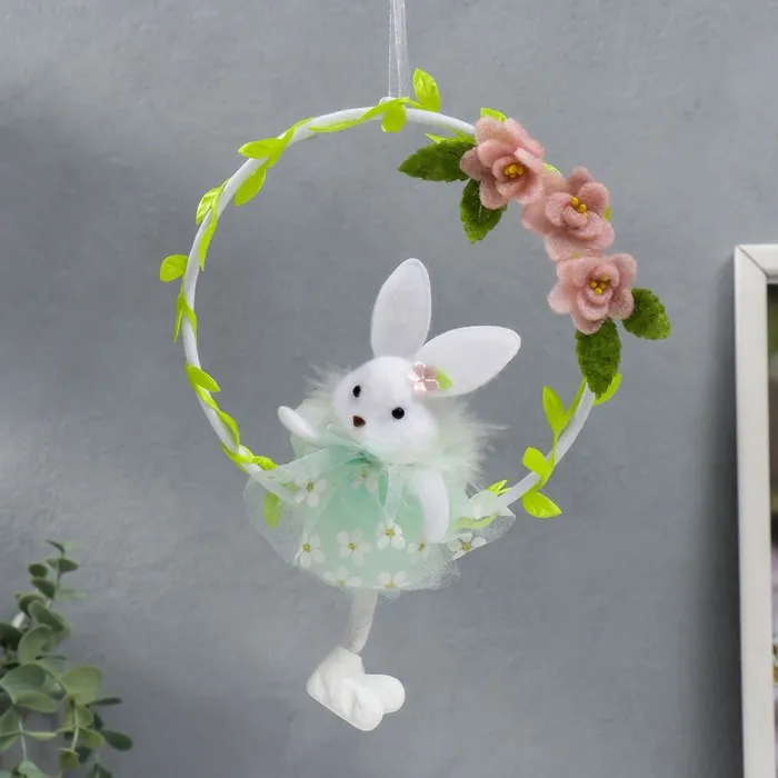 Фигурка «Зайка на веночке с цветами», подвесное украшение, 15×21 см, МИКС — Характеристики