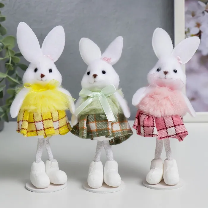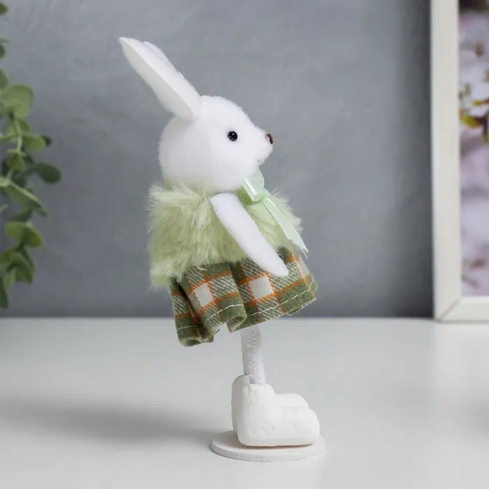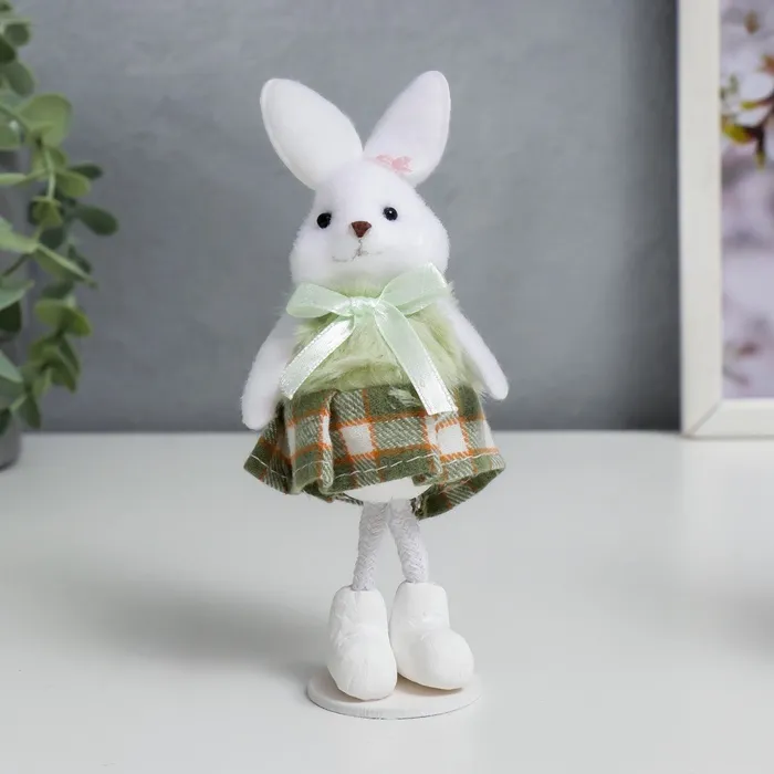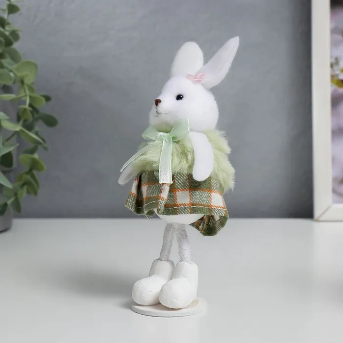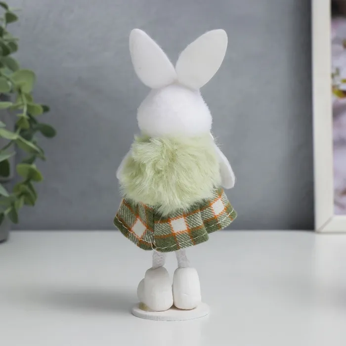 Позвольте представить вам очаровательную интерьерную фигурку, которая добавит нотку деревенского уюта и тепла в ваш дом. Эта милая зайка в клетчатой юбочке словно сошла со страниц доброй сказки, чтобы поселиться на вашей полке или рабочем столе.