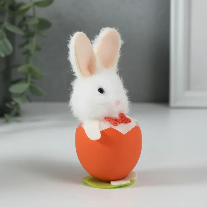 Текстильная фигурка зайчика, уютно устроившегося в скорлупке, добавит тепла и уюта в детскую комнату или станет милым интерьерным акцентом. Высота 12,2 см делает её достаточно заметной, сохраняя при этом камерность и деликатность образа.