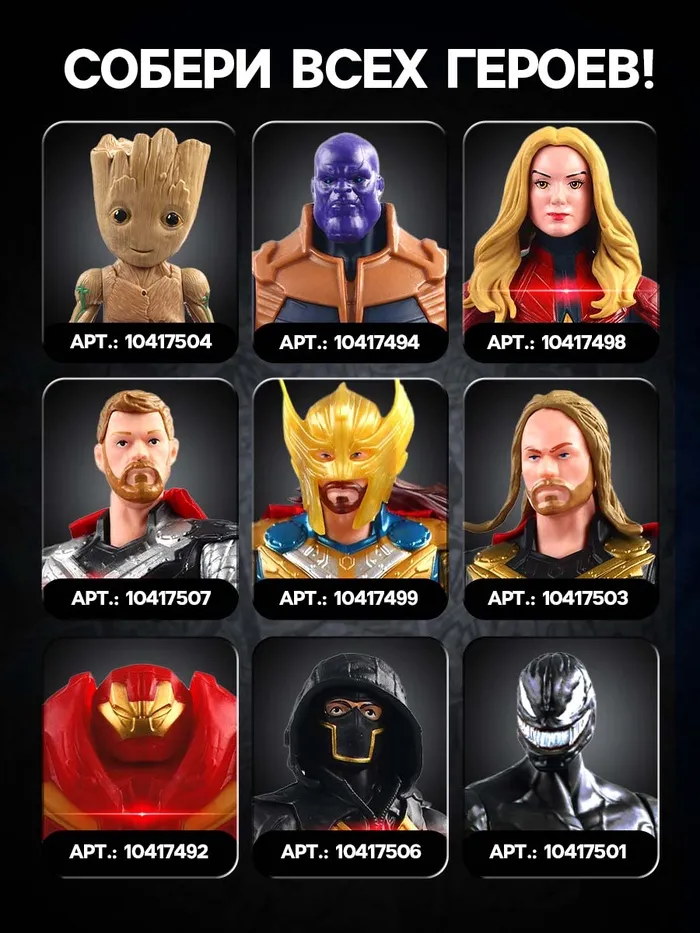 - Часть коллекционной серии героев Marvel — соберите всю команду Мстителей!