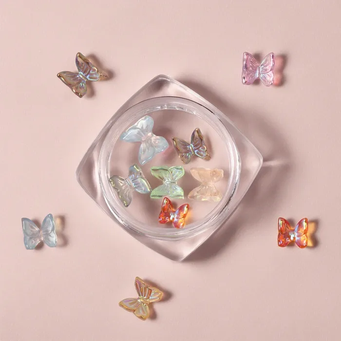 Добавьте изюминку вашему маникюру с объёмными декоративными элементами в виде бабочек от бренда Queen fair! Эти полупрозрачные и разноцветные бабочки станут идеальным акцентом для любого дизайна, придавая ногтям утончённость и оригинальность. Каждая бабочка выполнена из лёгкого пластика, что делает их удобными в использовании и долговечными.