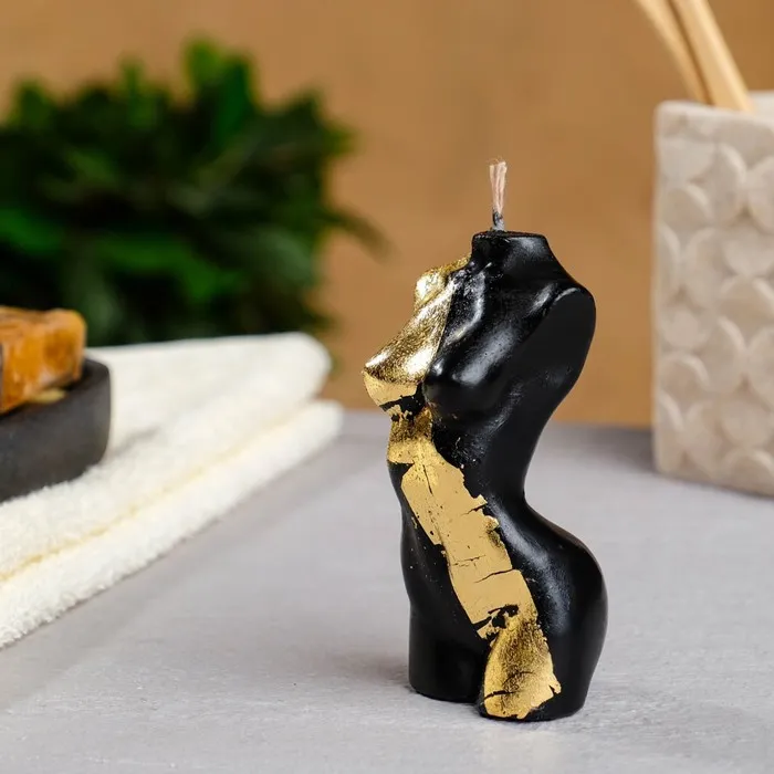 Фигурная свеча "Женское тело №1" чёрная с поталью 9см — Характеристики