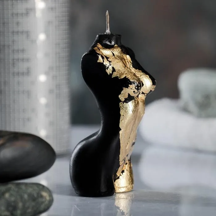 Фигурная свеча "Женское тело №1" чёрная с поталью 9см