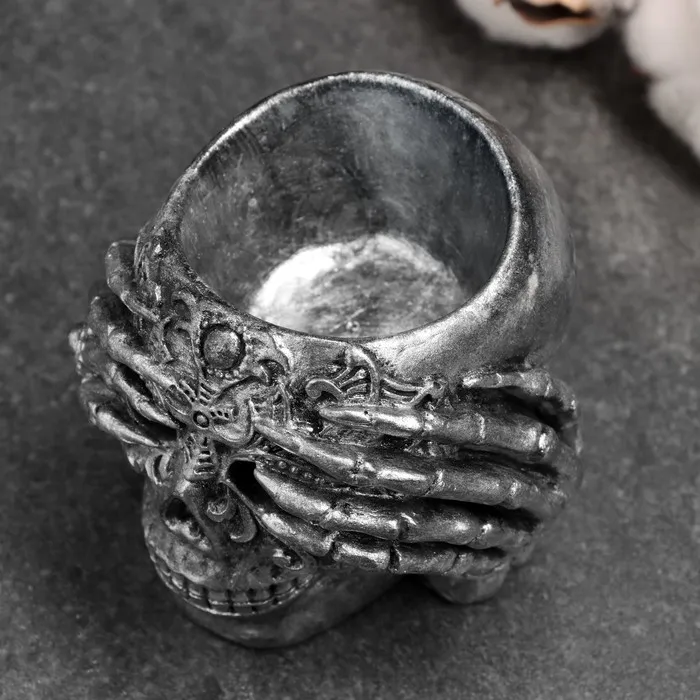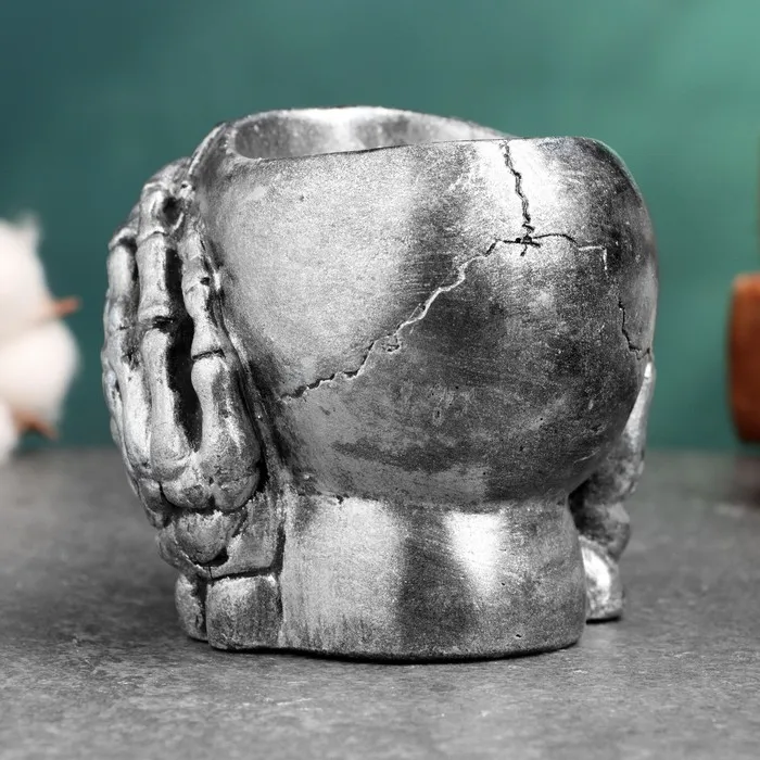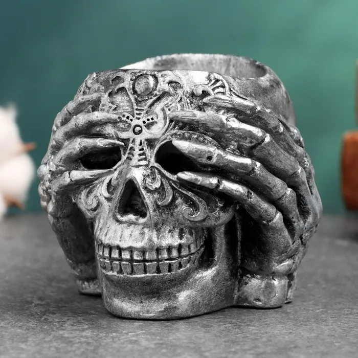 Фигурное кашпо "Череп" 9х9х8см, серебро — Характеристики