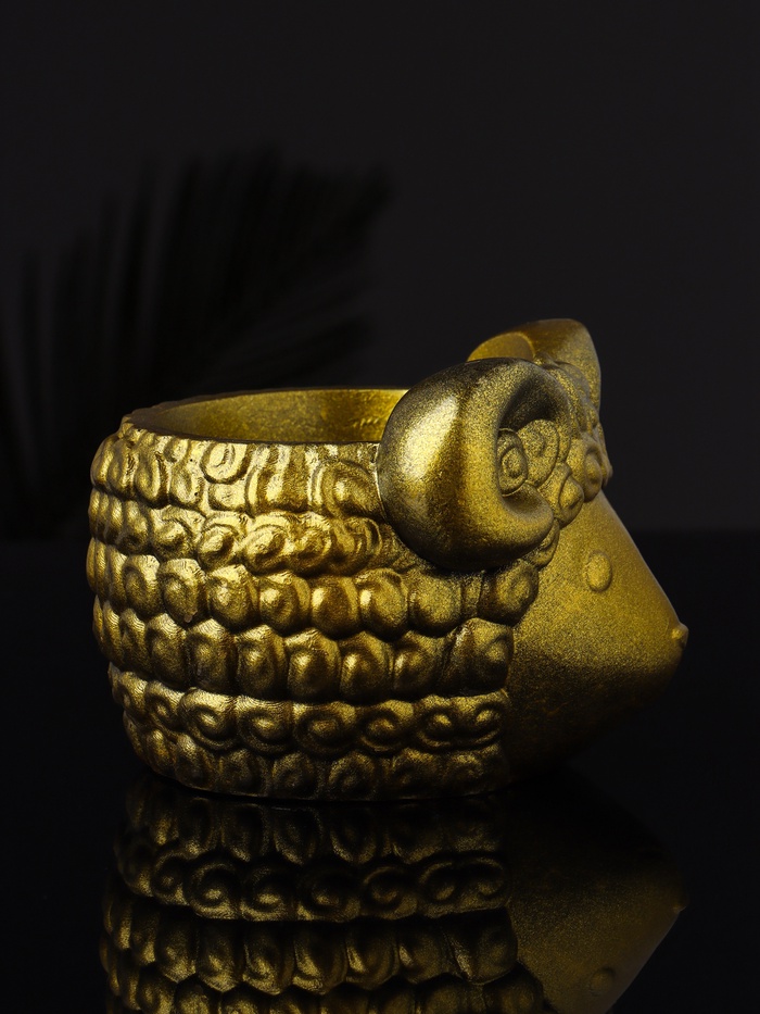 Фигурное кашпо для цветов «Баран», 221 мл, 12×10×7 см, гипс, золотистый — Характеристики