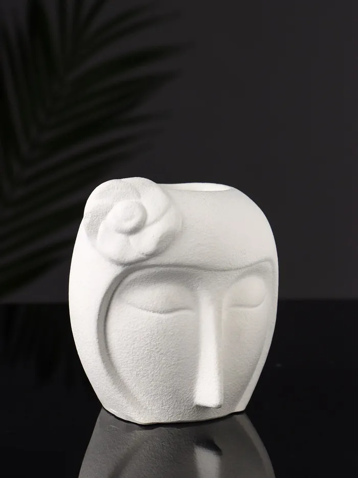 Представляем изящное кашпо в виде головы девушки с цветком, которое станет настоящим произведением искусства в вашем интерьере. Изготовленное из высококачественного гипса, это изделие сочетает в себе прочность и элегантность. Белоснежный цвет добавляет универсальности, позволяя гармонично вписаться в любой стиль — от классики до современного минимализма. Высота 11 см и компактная ширина 10 см делают его идеальным для размещения на столе, полке или подоконнике.