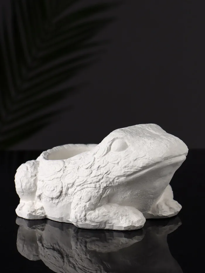 Это кашпо — очаровательный способ добавить нотку природного очарования в ваш интерьер. Гипсовая лягушка с выразительными деталями и гладкой белой поверхностью станет необычным домом для небольших растений, превращая обычный цветок в часть живой скульптуры.