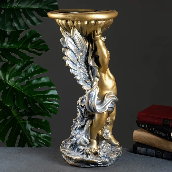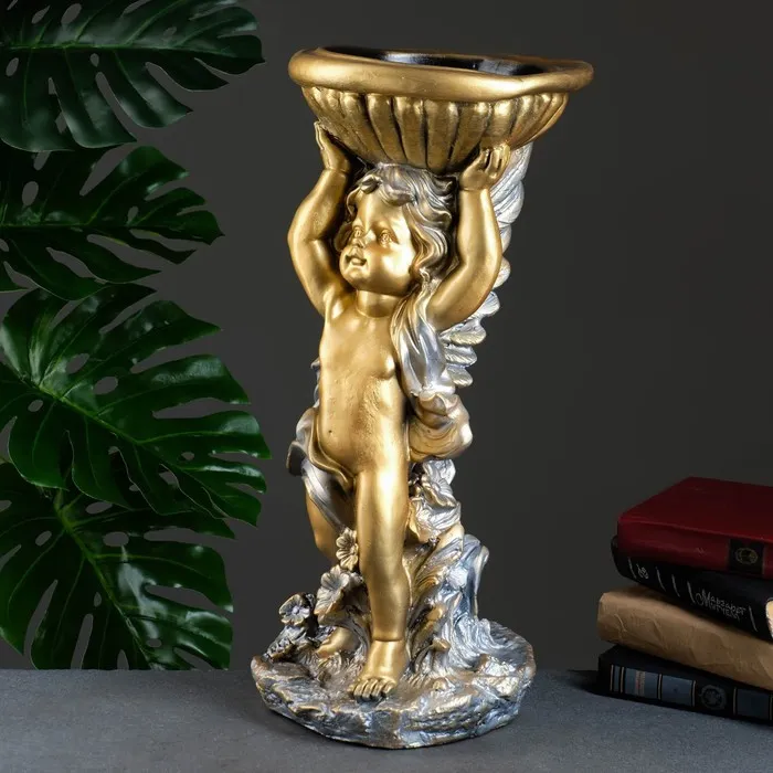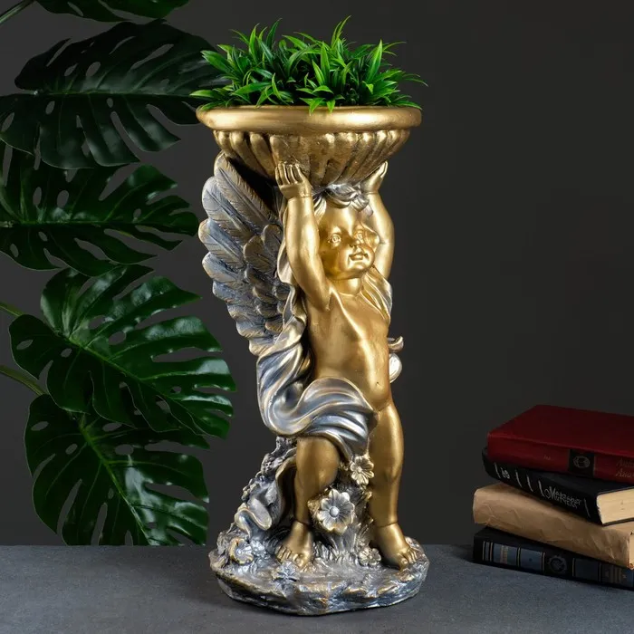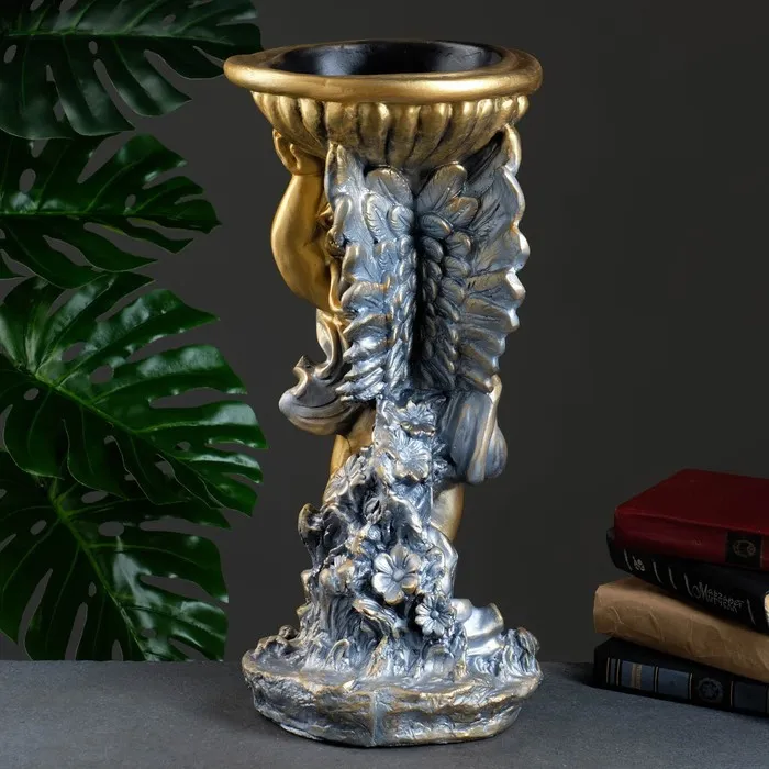 Фигурное кашпо гипс «Ангел с чашей», под бронзу с серебром, 0.6 л, 24×50×24 см — Характеристики