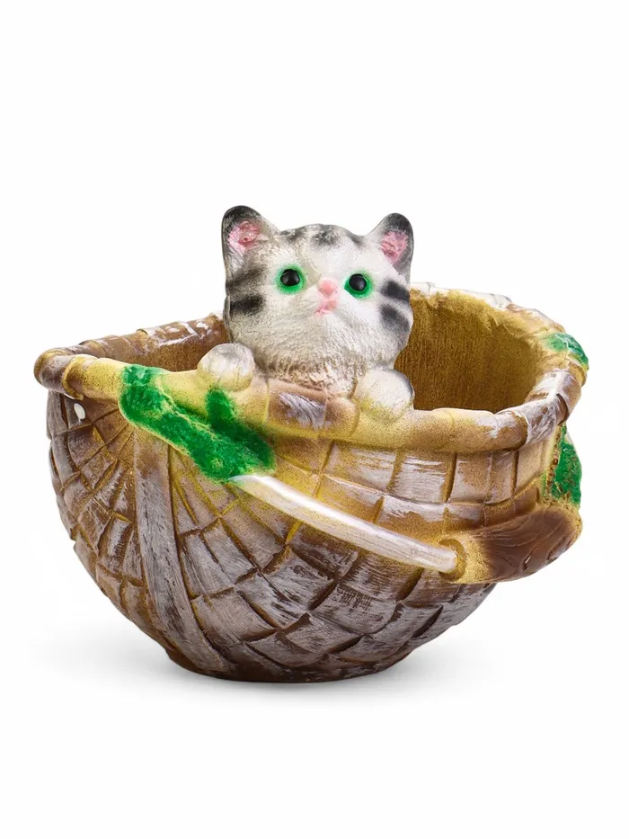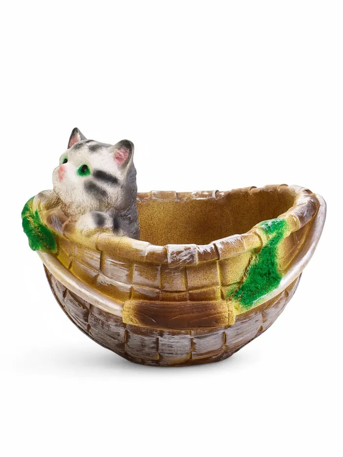 Фигурное кашпо из гипса «Котёнок в корзинке», 23×21×18 см — Характеристики