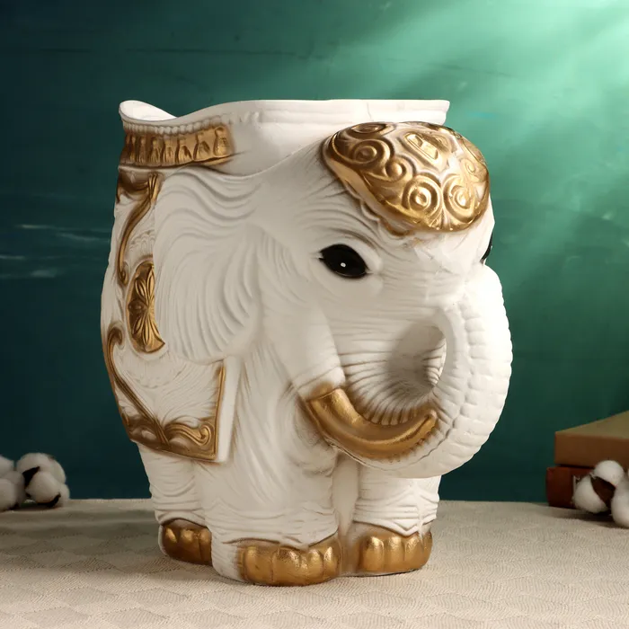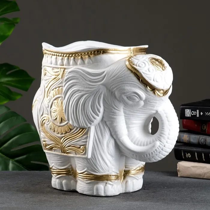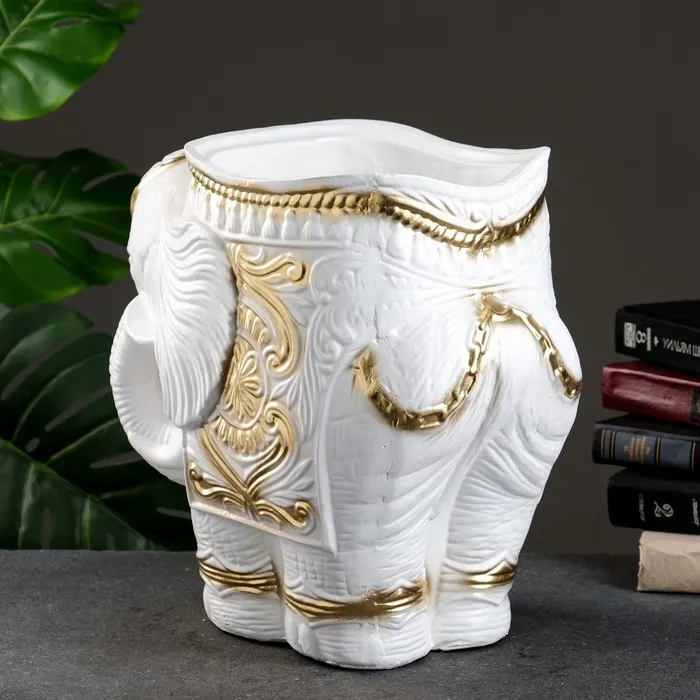 Фигурное кашпо "Слон средний", бело-золотой 6 л/ 35х22х36см — Характеристики