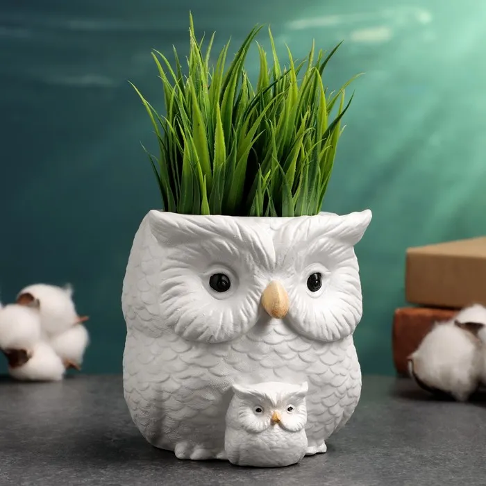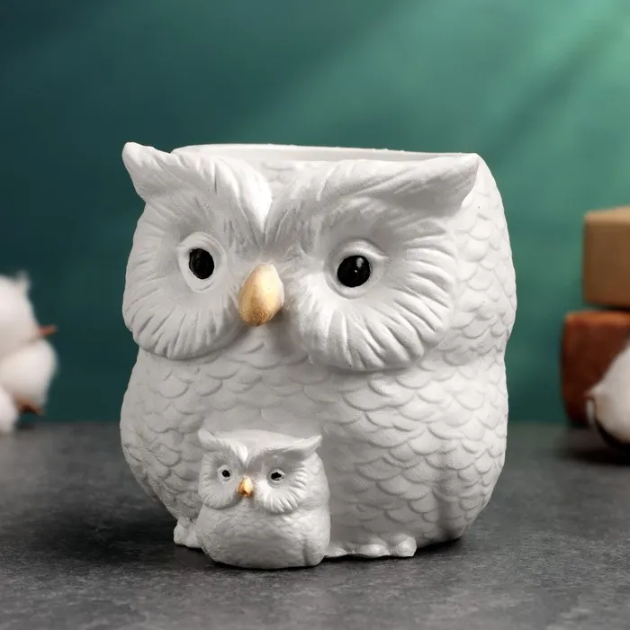 Фигурное кашпо "Сова с совенком" перламутр, 12х14х10см — Характеристики