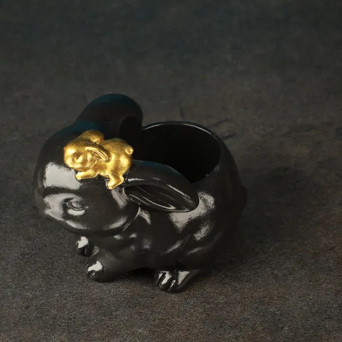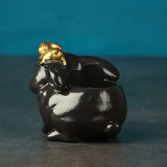 Фигурное кашпо "Зайчиха с зайчонком" черный с золотом, 10см — Характеристики